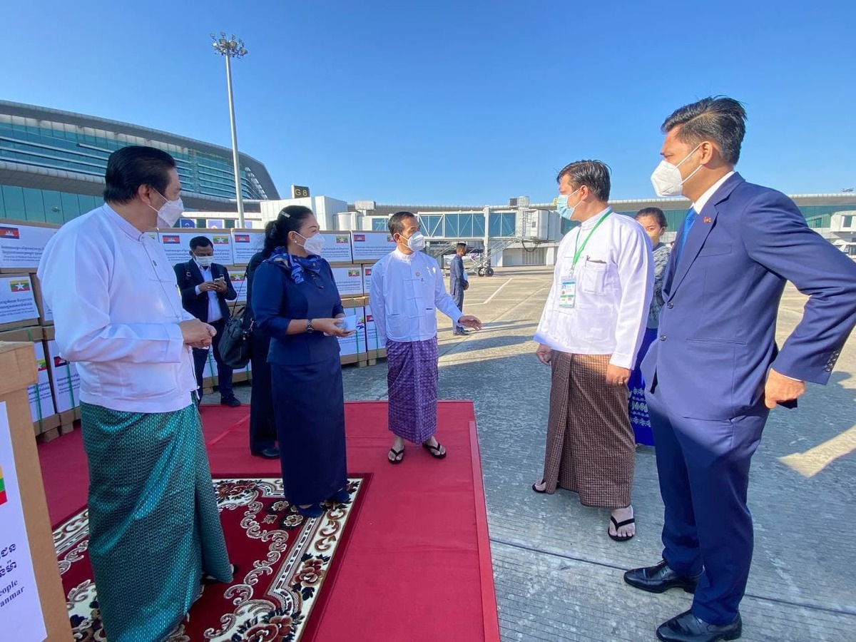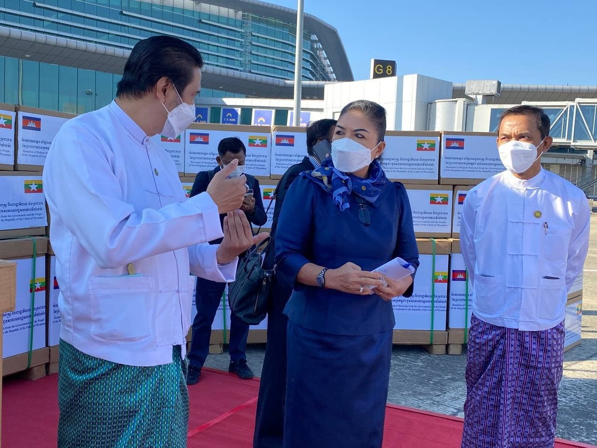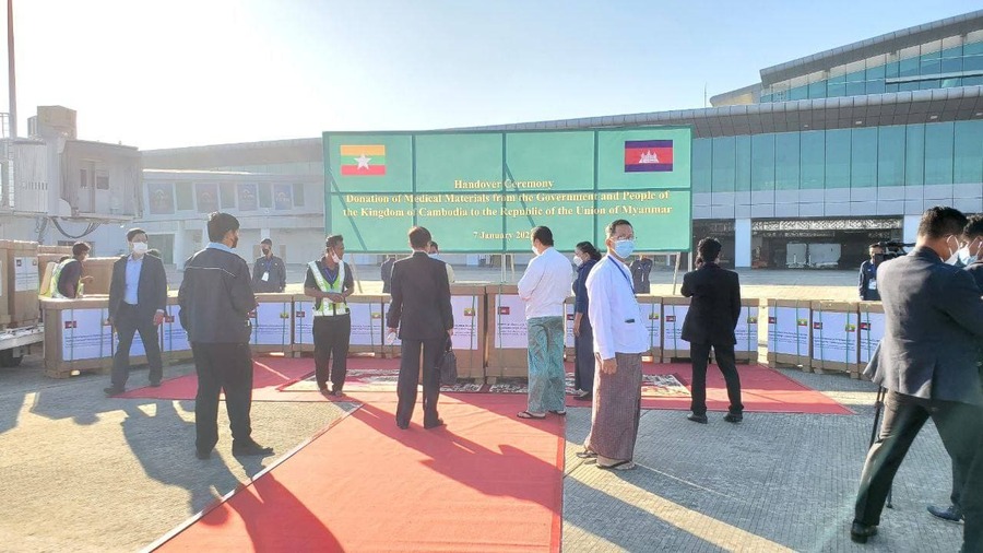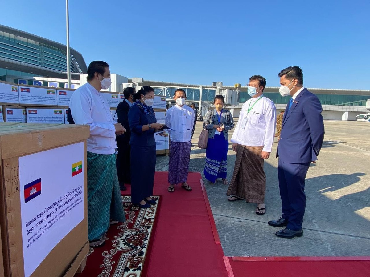 សម្ភារៈបរិក្ខាវេជ្ជសាស្រ្ត​ អំណោយរាជរដ្ឋាភិបាល​ និងប្រជាជនកម្ពុជា បានដឹកជញ្ជូនដល់អាកាសយានដ្ឋានអន្តរជាតិ ណៃពិដោ ប្រទេសមីយ៉ាន់ម៉ា ហើយ