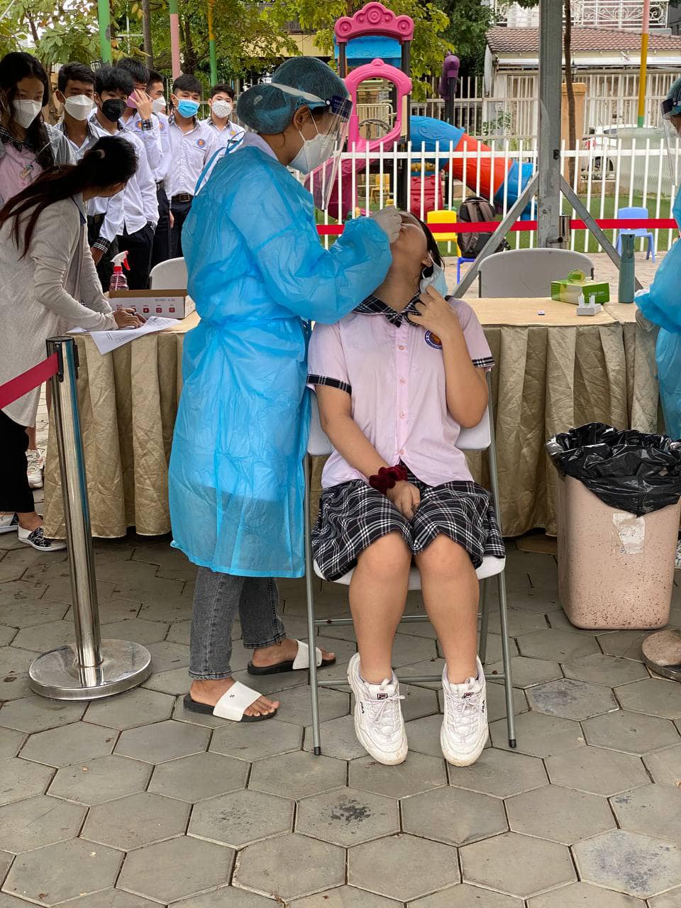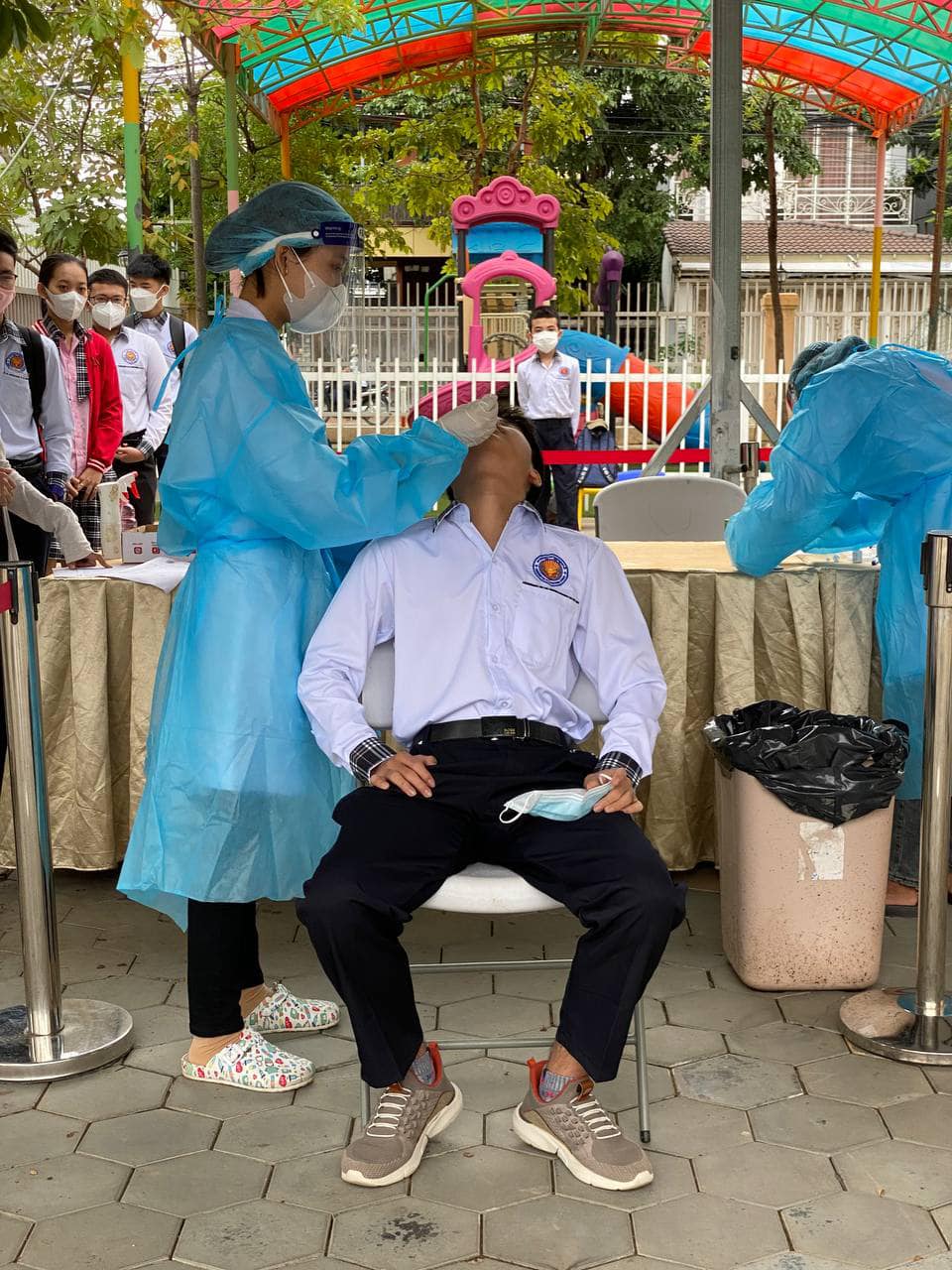 3. ថ្ងៃចន្ទ ទី១០ ខែមករា ឆ្នាំ២០២២ គណ:គ្រប់គ្រងសាលាបានរៀបចំក្រុមគ្រូពេទ្យ ធ្វើការយកសំណាកសិស្ស និងគ្រូបង្រៀនដែលពាក់ព័ន្ធទាំងអស់ ដើម្បីធ្វើតេស្តរកជំងឺកូវីដ-១៩ មុននឹងអនុញ្ញាតឱ្យចូលក្នុងសាលារៀន