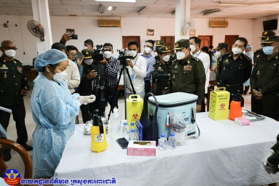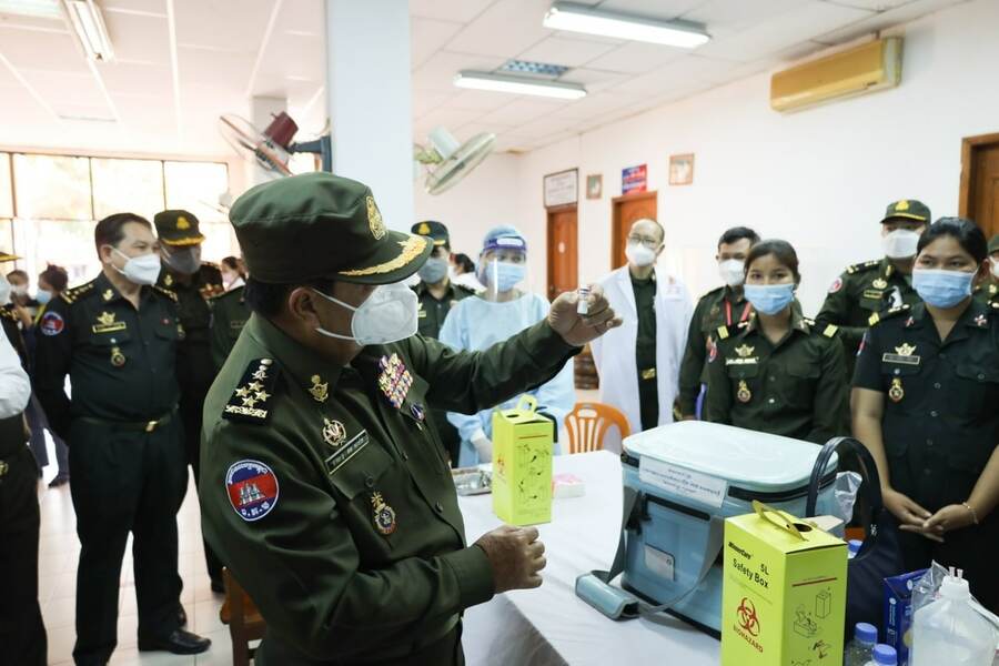 រាជធានីភ្នំពេញ៖ យោងតាមការចុះផ្សាយរបស់ ក្រសួងព័ត៌មាន នៅថ្ងៃទី១៨ ខែមករា ឆ្នាំ២០២២ បានឲ្យដឹងថា មន្ត្រីជាន់ខ្ពស់ក្រសួងការពារជាតិបានបញ្ជាក់ថាប្រជាពលរដ្ឋដែលចាក់វ៉ាក់សាំងបង្ការជំងឺកូវីដ១៩ ដែលមានប័ណ្ណរបស់កងទ័ព អាចចាក់វ៉ាក់សាំងនៅតាមទីកន្លែងរបស់ក្រសួងសុខាភិបាលបាន តែត្រូវមានលិខិត បញ្ជាក់ ដើម្បីអាចផ្តល់ភាពងាយស្រួលក្នុងការបញ្ចូលទិន្នន័យ។