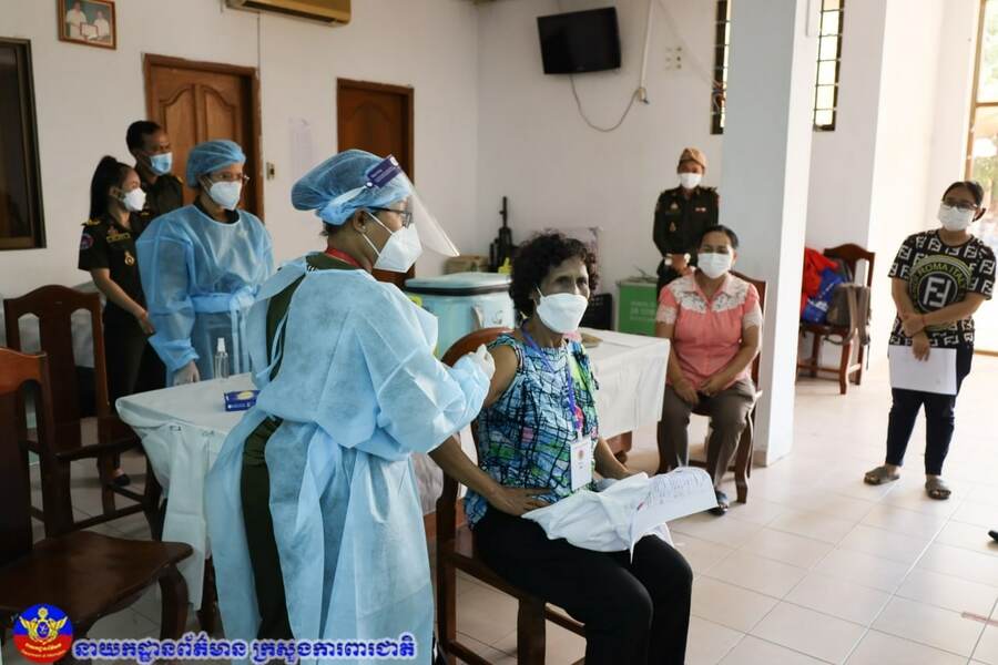 យោងតាមរបាយការណ៍ក្រសួងការពារជាតិកម្ពុជាចេញផ្សាយនៅថ្ងៃទី១៧ ខែមករា ឆ្នាំ២០២២នេះ បានឱ្យដឹងថា ការចាក់វ៉ាក់សាំងការពារជំងឺកូវីដ១៩ លើកទី១ ជូនកងទ័ព, គ្រួសារកងទ័ព និងប្រជាពលរដ្ឋ បានចំនួនសរុប២,៧៥៩,៨៤៤ នាក់, ចាក់លើកទី២ បានចំនួន ២,៧៣២,៣៨០នាក់ និងដូសជំរុញចំនួន ១,៨០៩,៨៦០នាក់ ៕