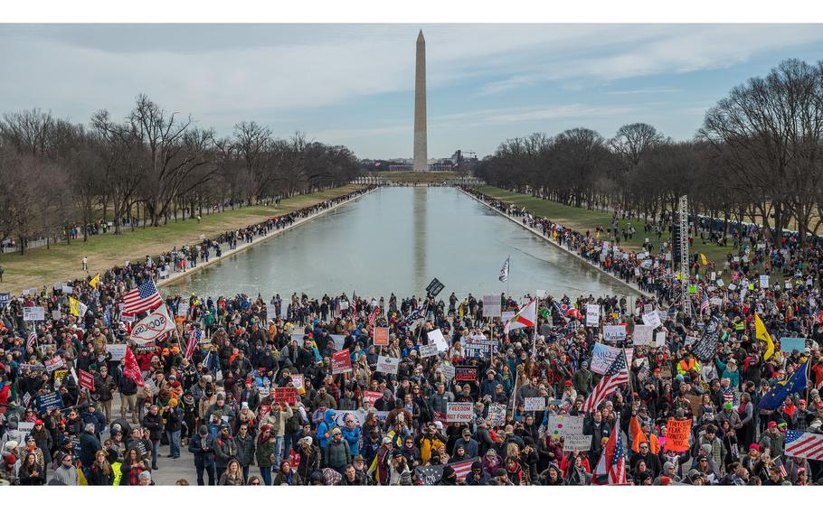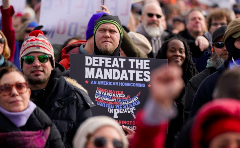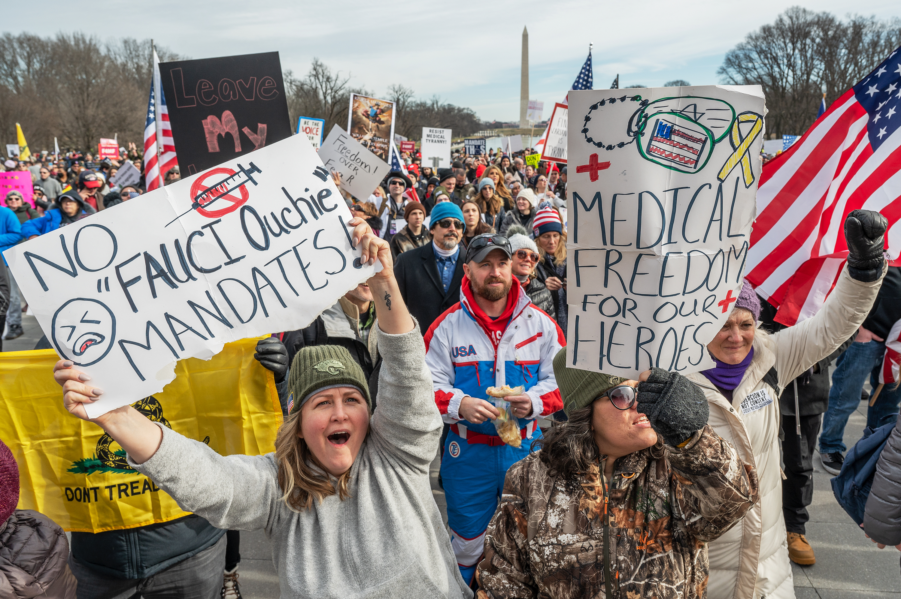 មនុស្សប្រហែល ១០,០០០ នាក់ មកពីទូទាំងសហរដ្ឋអាមេរិក បានប្រមូលផ្តុំគ្នានៅទីក្រុងវ៉ាស៊ីនតោនកាលពីថ្ងៃអាទិត្យ ដើម្បីតវ៉ាប្រឆាំងនឹងការចាក់វ៉ាក់សាំងជាកាតព្វកិច្ច។ អ្នកចូលរួមជាច្រើនបានស្រែកថា រដ្ឋាភិបាលកំពុងធ្វើអន្តរាគមន៍ក្នុងបញ្ហាសុខភាពបុគ្គល ខណៈអ្នកពន្លត់អគ្គីភ័យម្នាក់ ដែលត្រូវបានព្យួរពីការងារដោយសារបដិសេធមិនទទួលថ្នាំបង្ការបាននិយាយថា សេរីភាពនៃការជ្រើសរើសរបស់បុគ្គលគួរតែត្រូវបានគោរព។