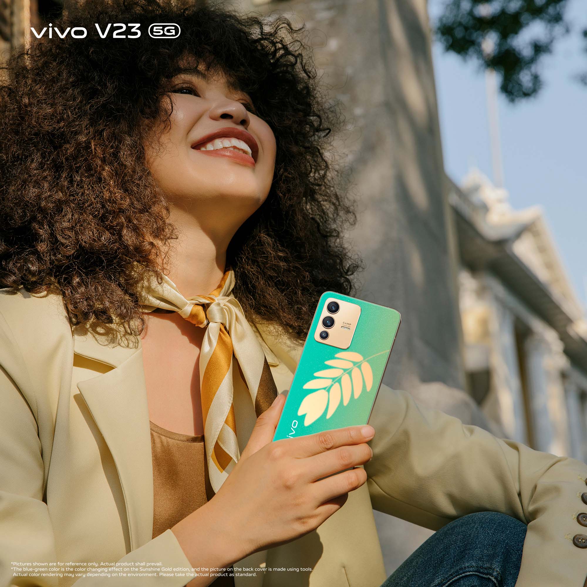 ស្មាតហ្វូន vivo V23 5G មានពីរពណ៌សម្រាប់ជ្រើសរើស Sunshine Gold និង Stardust black ។