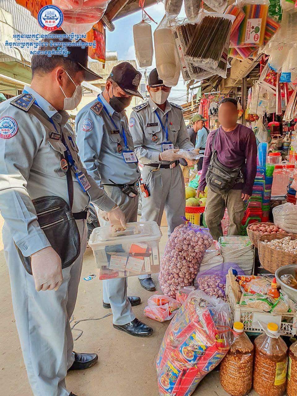 យោងតាមការចុះផ្សាយរបស់ អគ្គ.ការពារអ្នកប្រើប្រាស់ កិច្ចការប្រកួតប្រជែង និងបង្ក្រាបការក្លែងបន្លំ បានឲ្យដឹងថា ស្ថិតក្នុងស្រុកសំរោងទង ខេត្តកំពង់ស្ពឺ ក្រុងសៀមរាប និងស្រុកពួក ខេត្តសៀមរាប ស្រុកកំចាយមារ ខេត្តព្រៃវែង មន្ត្រី ក.ប.ប. ប្រចាំនៅខេត្តទាំង៣ នៅថ្ងៃទី២៥ ខែមករា ឆ្នាំ២០២១នេះ បានបន្តប្រតិបត្តិការត្រួតពិនិត្យគុណភាពសុវត្ថិភាពទំនិញម្ហូបអាហារ ក៏ដូចជាទំនិញប្រើប្រាស់នានា នៅតាមទីផ្សារដើម្បីធានាបាននូវការការពារសុខុមាលភាពជូនប្រជាពលរដ្ឋ ដោយបានធ្វើការត្រួតពិនិត្យឃើញ និងដកហូតនូវទំនិញមិនមានអនុលោមភាពប្រភេទពពុះសណ្តែក និងបបែលក្រៀមចំនួន ៩.៨គីឡូក្រាម រួមទាំងភេសជ្ជៈចម្រុះ នំចម្រុះ គ្រឿងសម្អាងពុំអនុលោមតាមបទដ្ឋានព័ត៌មាន និងគ្រឿងឧបភោគបរិភោគផ្សេងទៀត សរុបចំនួន ២៨៨.៧៧គីឡូក្រាម និងអាល់កុលក្លែងក្លាយចំនួន១កានផងដែរ។
