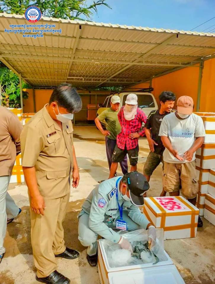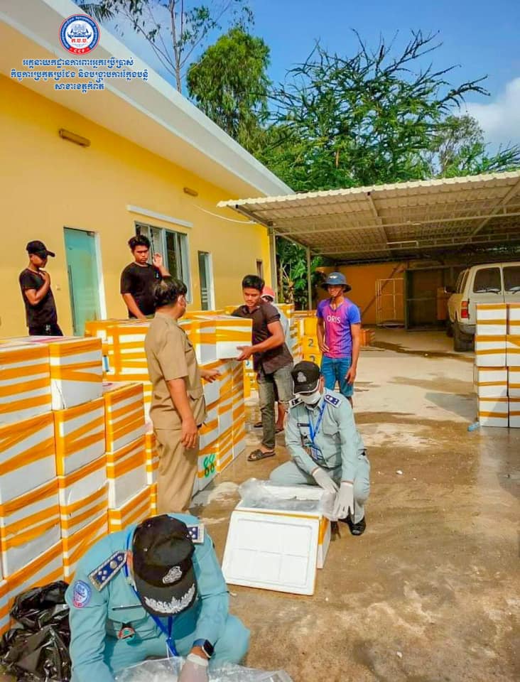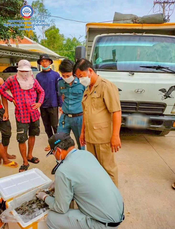 និងយោងតាមសំណើរបស់សាខាគយ និងរដ្ឋាករច្រកទ្វារអន្តរជាតិព្រែកចាក នៅថ្ងៃទី០៤ ខែមករា ឆ្នាំ២០២២ នេះ មន្រ្តីជំនាញសាខាក.ប.ប. ខេត្តកំពត បានចុះសហការត្រួតពិនិត្យបង្គាស្រស់នាំចូលនៅច្រកទ្វាព្រំដែនអន្តរជាតិព្រែកចាក ខេត្តកំពត។ ក្នុងចំណោមបង្គានាំចូលសរុបចំនួន ១៣តោន៦២៥គីឡូក្រាម មន្រ្តីជំនាញបានរកឃើញបង្គាចំនួន ១២៨គីឡូក្រាមមានសារធាតុ CMC (ចាហួយ) ។ មន្រ្តីជំនាញបានដកហូតបង្គាដែលមានសារធាតុ CMC ទាំងនោះទៅកម្ទេចចោលតាមនីតិវិធី៕
