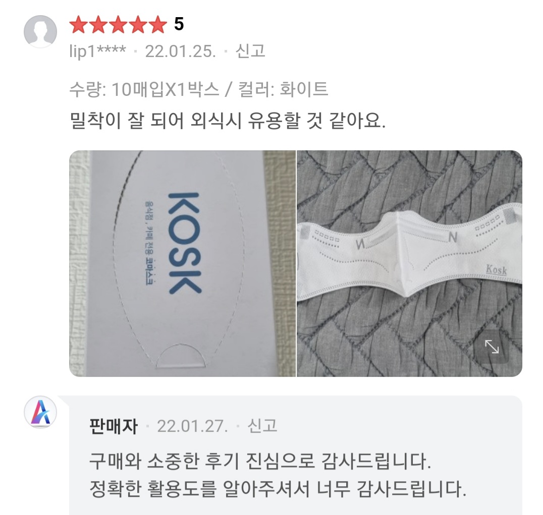 ប្រភពខាងលើបានបន្តថា ម៉ាស “kosk” ត្រូវបានរចនាឡើងដោយមាន ២ ស្រទាប់គឺស្រទាប់លើសម្រាប់ការពារច្រមុះនិងស្រទាប់ក្រោមសម្រាប់ការពារមាត់។ ដូចនេះអ្នកប្រើប្រាស់មានជម្រើស ២ គឺអាចពាក់ទាំង ២ ស្រទាប់ក្នុងពេលតែមួយ ឬអាចដោះស្រទាប់ការពារមាត់ចេញក្នុងពេលញ៉ាំអាហារនិងបន្តពាក់ត្រឹមស្រទាប់សម្រាប់ការពារច្រមុះ។ ចំពោះតម្លៃរបស់ម៉ាស់ប្រភេទ “kosk” វិញគឺត្រូវបានគេដាក់លក់ក្នុងតម្លៃ ៩,៨០០វ៉ុន (៨,១៣ ដុល្លារអាមេរិក) សម្រាប់ម៉ាស ១ប្រអប់ ដែលមានម៉ាសចំនួន ១០នៅក្នុងនោះ៕