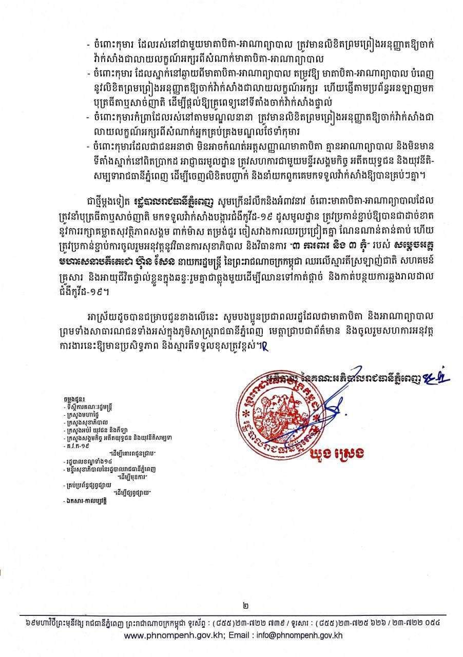 សូមអាចសេចក្ដីជូនដំណឹងលម្អិតរបស់ រដ្ឋបាលរាជធានីភ្នំពេញ ខាងក្រោម៖