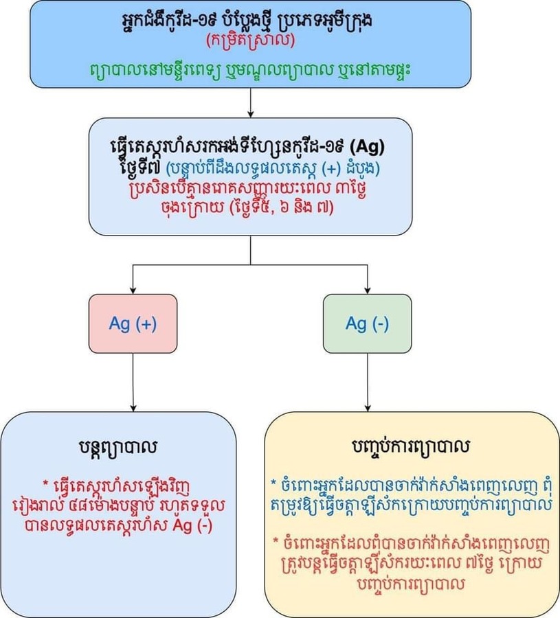 ប្រជាពលរដ្ឋធ្វើតេស្តរហ័សឃើញវិជ្ជមានកូវីដ-១៩ សូមដាក់ពាក្យសុំទទួលការថែទាំតាមផ្ទះ ទៅអាជ្ញាធរ ភូមិ សង្កាត់ ខណ្ឌ ឬបញ្ជូនទៅមណ្ឌលសុខភាព