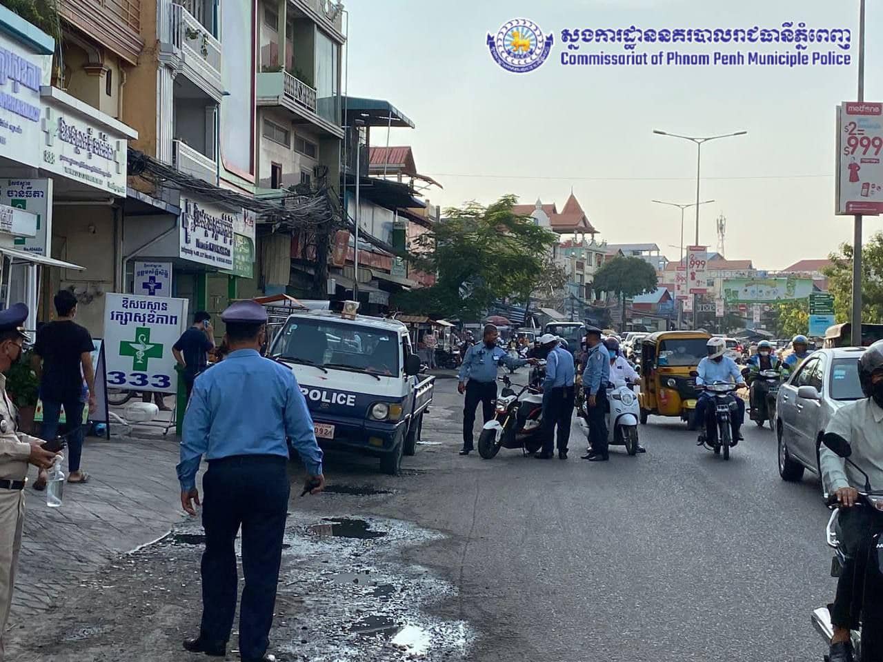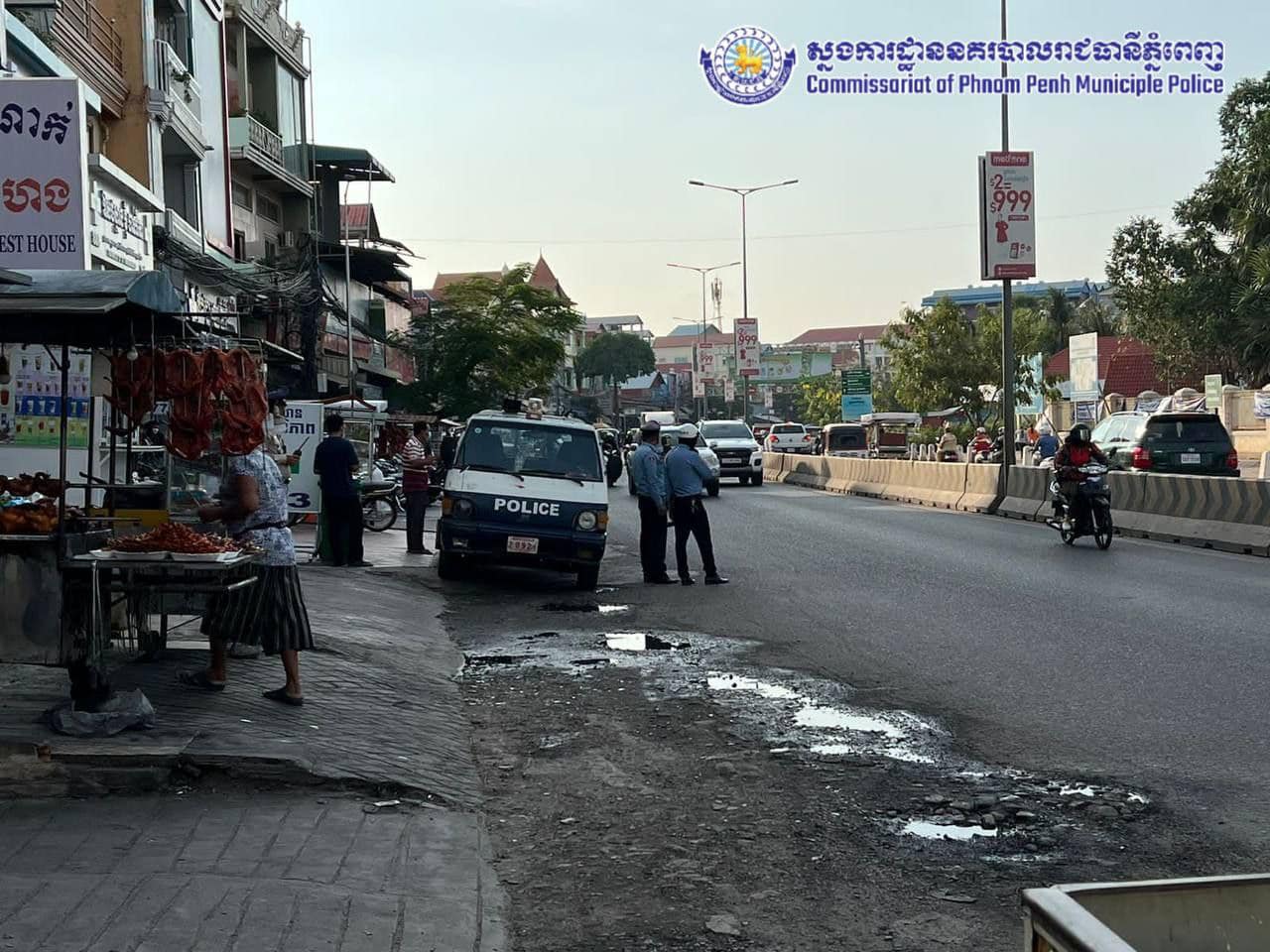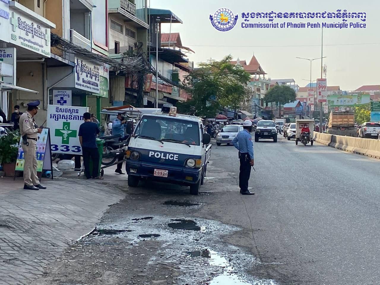 រាជធានីភ្នំពេញ៖ ក្រុមការងារព័ត៌មាន និងប្រតិកម្មហ័សនៃស្នងការដ្ឋាននគរបាលរាជធានីភ្នំពេញ បានឲ្យដឹងថា បន្ទាប់ពីទទួលបានខំមិនពីប្រជាពលរដ្ឋក្នុងផេកស្នងការដ្ឋាននគរបាលរាជធានីភ្នំពេញ ទាក់ទងទៅនឹងបញ្ហាកកស្ទះចរាចរណ៍ នៅផ្លូវលេខ២៧១ មុខមន្ទីរពេទ្យមិត្តភាព-ខ្មែរសូវៀត និងស្ពានចំរើនផល នៅល្ងាចថ្ងៃទី២២ ខែកុម្ភៈ ឆ្នាំ២០២២ កម្លាំងការិយាល័យនគរបាលសណ្តាប់ធ្នាប់ នៃស្នងការដ្ឋាននគរបាលរាជធានីភ្នំពេញ ដឹកនាំដោយលោកវរសេនីយ៍ឯក អេម សម្បត្តិ នាយការិយាល័យនគរបាលសណ្តាប់ធ្នាប់ ចុះរៀបចំសណ្តាប់ធ្នាប់ និងធ្វើការផ្សព្វផ្សាយអប់រំណែនាំបងប្អូនអាជីវករ ដោយឲ្យទ្បើងលក់ផុតពីទ្រូងថ្នល់បណ្តោះអាសន្ន ១ភាគ៣ នៃចិញ្ចើមថ្នល់ ដើម្បីកាត់បន្ថយការកកស្ទះចរាចរណ៍ រក្សាសណ្តាប់ធ្នាប់សាធារណៈ និងងាយស្រួលដល់ប្រជាពលរដ្ឋក្នុងការធ្វើដំណើរទៅវិញទៅមក ។