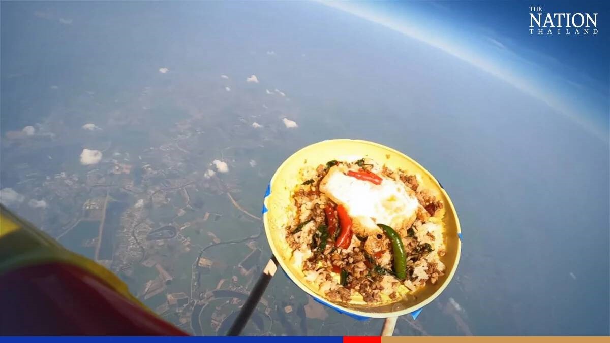 ថៃ៖ ទីភ្នាក់ងារអវកាសរបស់ប្រទេសថៃកំពុងតែជម្រុញឲ្យមានការនាំយកអាហារថៃទៅកាន់ទីអវកាសជាលើកដំបូងបង្អស់នៅលើពិភពលោក នេះបើយោងតាមការចុះផ្សាយនៅរបស់បណ្តាញសារព័ត៌មាន National Thailand កាលពីថ្ងៃអង្គារ ទី២២ ខែកុម្ភៈ ម្សិលមិញនេះ។ ការជម្រុញឲ្យមានបេសកកម្មនាំយកអាហារទៅកាន់ទីអវកាសជាលើកដំបូងនេះត្រូវបានធ្វើឡើងក្រោយពីមានបុរសជនជាតិកាណាដាម្នាក់បានផលិតវីដេអូបង្ហោះអាហារថៃមួយប្រភេទទៅលើអាកាសកាលពីថ្ងៃទី ១០ ខែកុម្ភៈកន្លងទៅ ហើយវីដេអូទាំងស្រុងនៃសកម្មភាពដ៏កម្រនោះត្រូវបានទីភ្នាក់ងារ​អភិវឌ្ឍន៍​បច្ចេកវិទ្យា​អវកាសនិង​ភូមិសាស្ត្រ​ព័ត៌មានវិទ្យា (GISTDA) របស់ថៃយកទៅផ្សព្វផ្សាយបន្តជាសាធារណៈកាលពីពេលថ្មីៗនេះ។