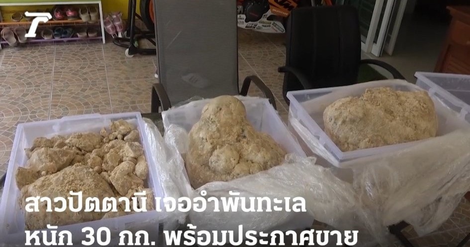 ក្លាយជាអ្នកមានមួយប៉ប្រិចភ្នែក! ស្រ្តីថៃម្នាក់មានសំណាងរើសបានកម្អួតត្រីបាឡែន ៣០គីឡូក្រាម ដែលមានតម្លៃរាប់លានដុល្លារ