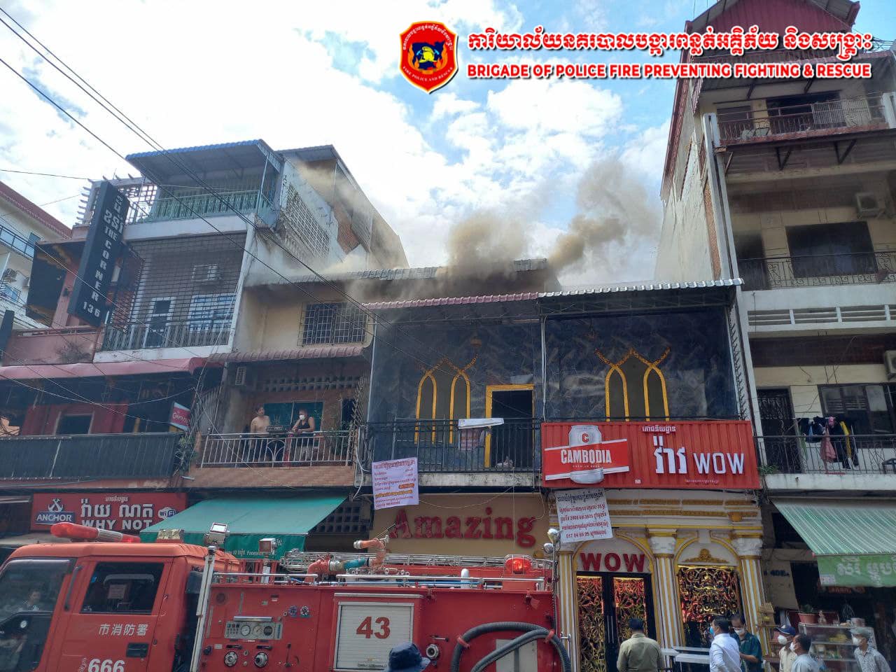 ផ្សារដែកធ្លាក់កម្ទេចភ្លើងបង្ករជាអគ្គិភ័យឆាបឆេះហាងបាបារាំង Amazing មួយកន្លែង នៅសង្កាត់ផ្សារកណ្តាលទី១ ក្នុងខណ្ឌដូនពេញ