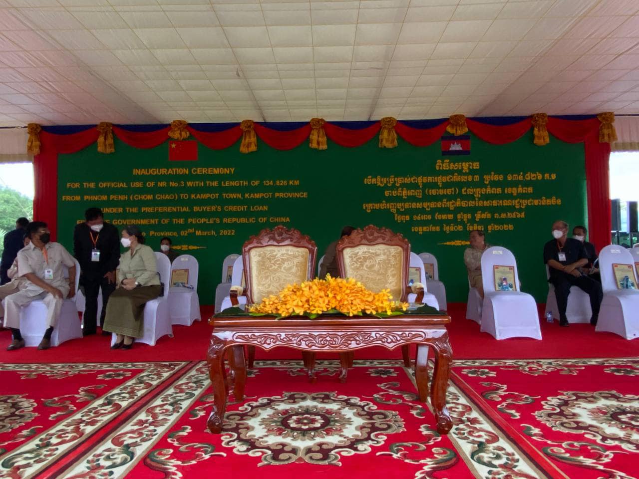 យោងតាមការគណនីហ្វេស ប៊ុកផ្ទាល់របស់ សម្តេចតេជោ ហ៊ុន សែន នាយករដ្ឋមន្ត្រីនៃព្រះរាជាណាចក្រកម្ពុជា បានឲ្យដឹងថា នៅព្រឹកថ្ងៃពុធ ១៤រោច ខែមាឃ ឆ្នាំឆ្លូវ ត្រីស័ក ព.ស. ២៥៦៥ ត្រូវនឹង ថ្ងៃទី២ ខែមីនា ឆ្នាំ២០២២នេះ សម្តេចអគ្គមហាសេនាបតីតេជោ ហ៊ុន សែន នាយករដ្ឋមន្ត្រីនៃព្រះរាជាណាចក្រកម្ពុជា និងឯកឧត្តម វ៉ាង វិនធៀន ឯកអគ្គរដ្ឋទូតចិន ប្រចាំនៅកម្ពុជា នឹងអញ្ជើញសម្ពោធដាក់ឱ្យប្រើប្រាស់ ជាផ្លូវការនូវកំណាត់ផ្លូវជាតិលេខ៣ ពី ភ្នំពេញ-កំពត ប្រវែងជាង ១៣៤គីឡូម៉ែត្រ។