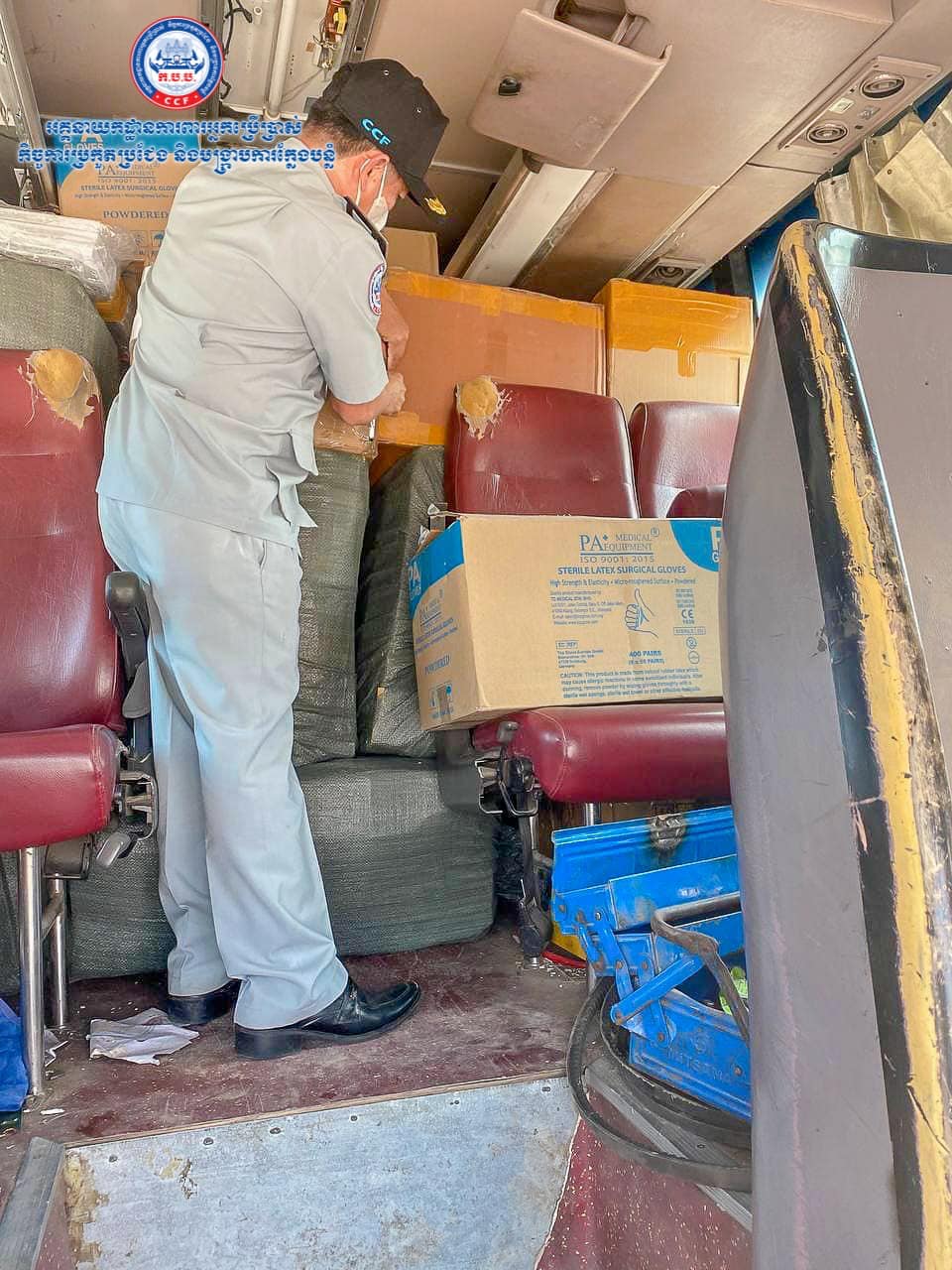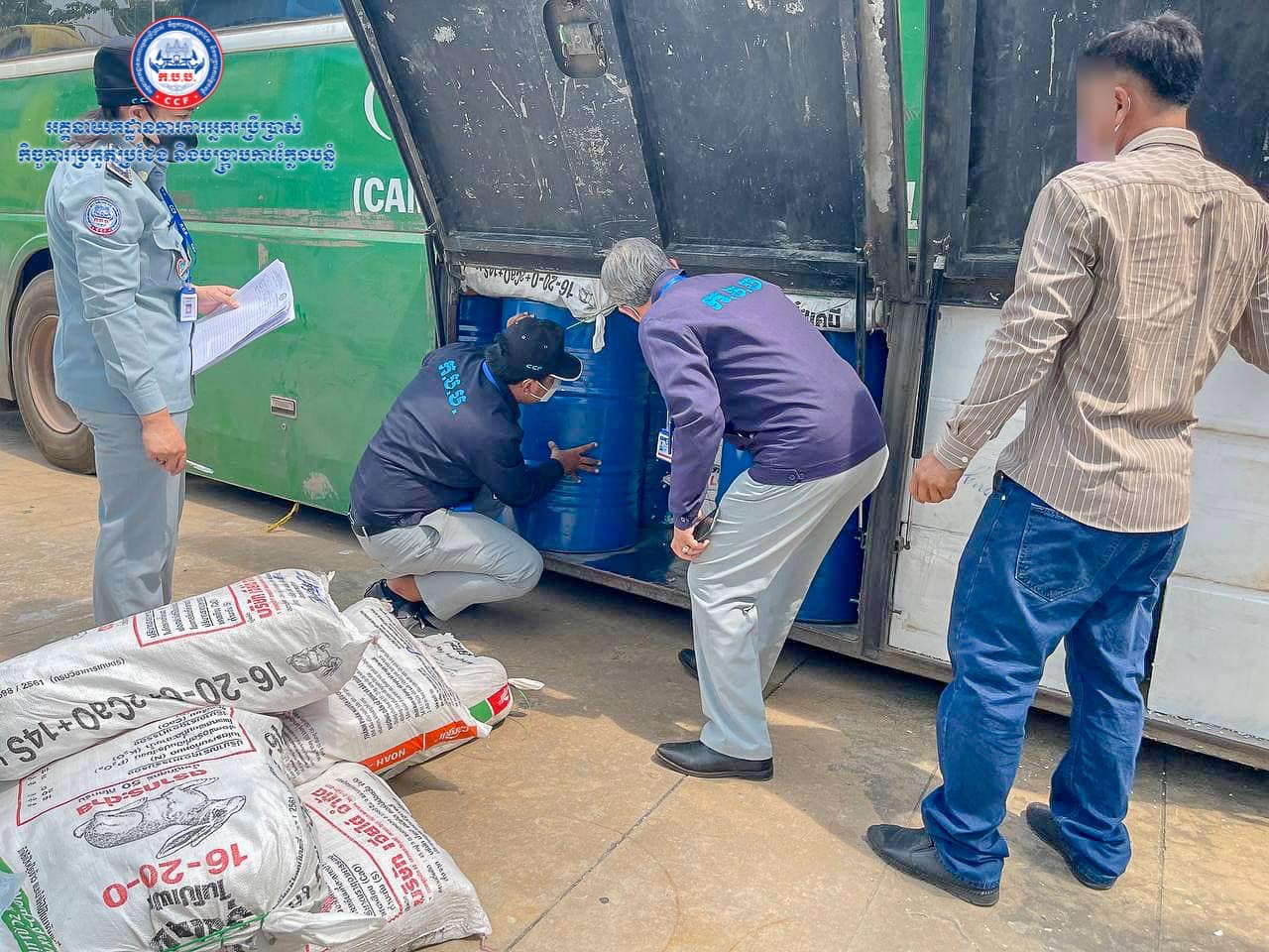 មន្ត្រីជំនាញ ស្ទាក់ចាប់រថយន្តក្រុងចំនួន ៨គ្រឿង ដែលដឹកទំនិញចូលពីព្រំដែនប្រទេសវៀតណាម រកឃើញមិនមានអនុលោម និងឯកសារពាក់ព័ន្ធនាំចូលលើទំនិញមួយចំនួន
