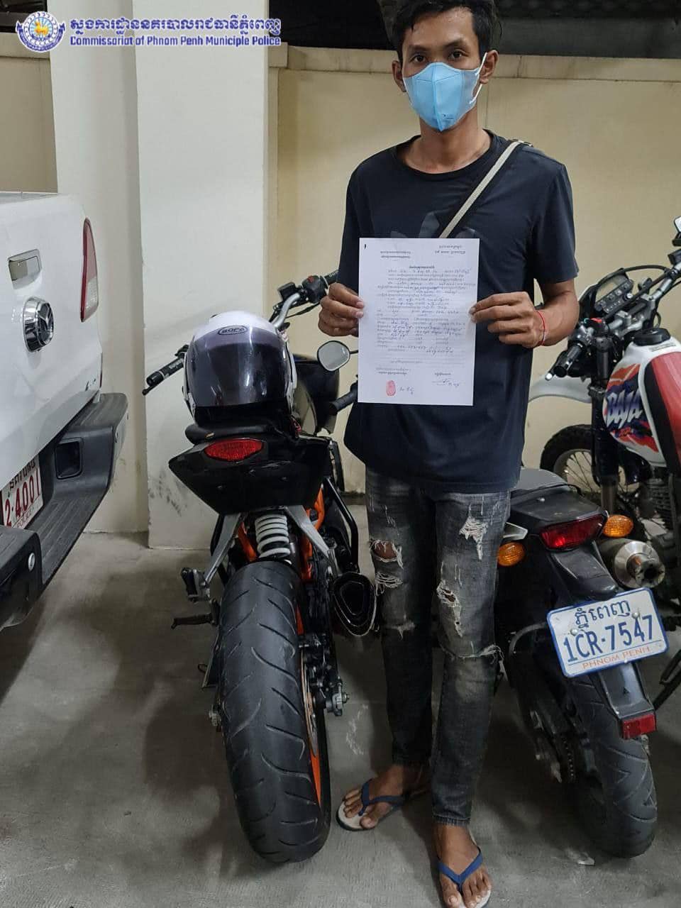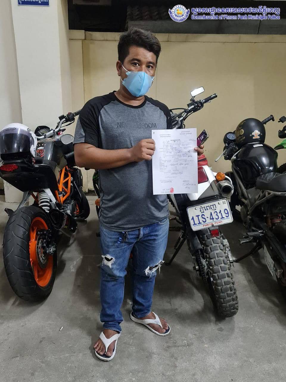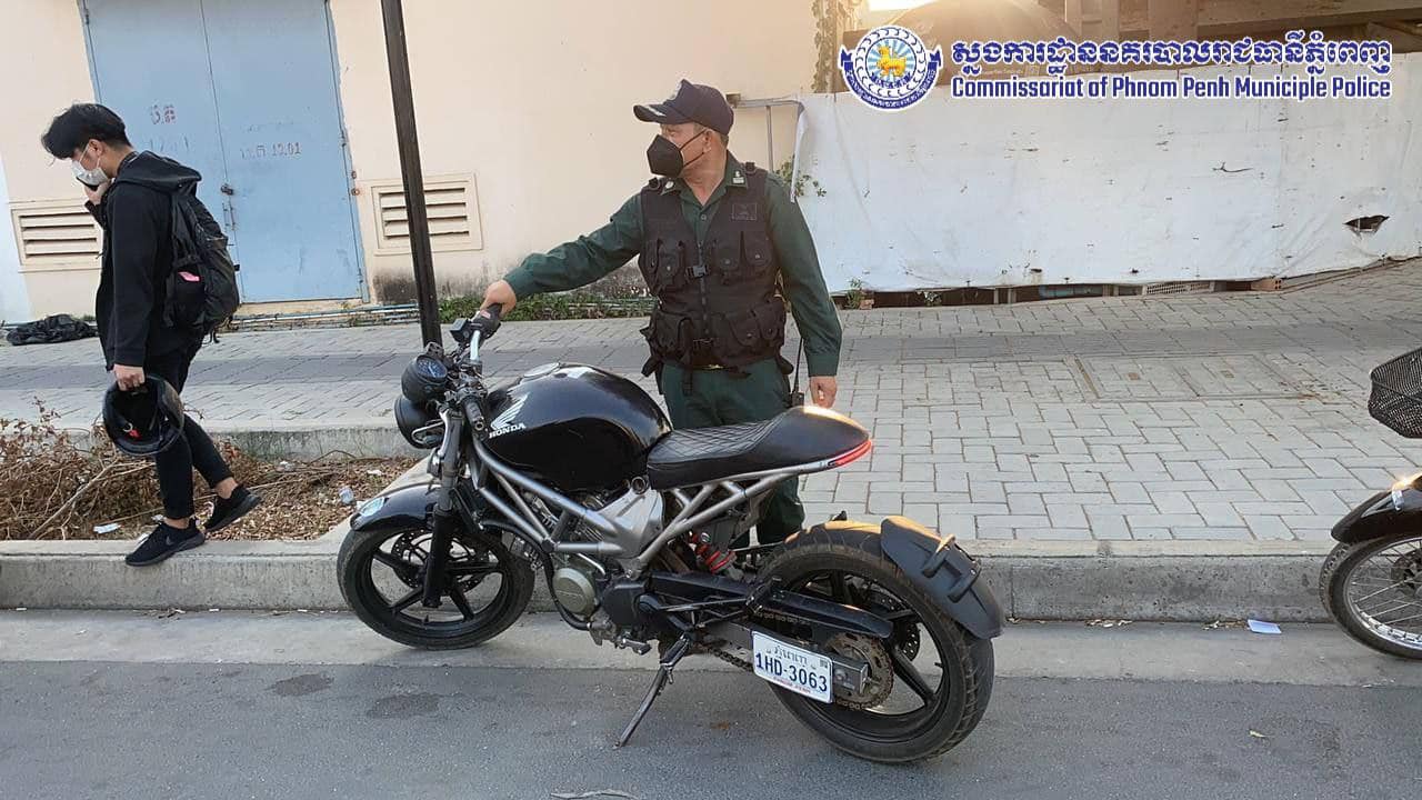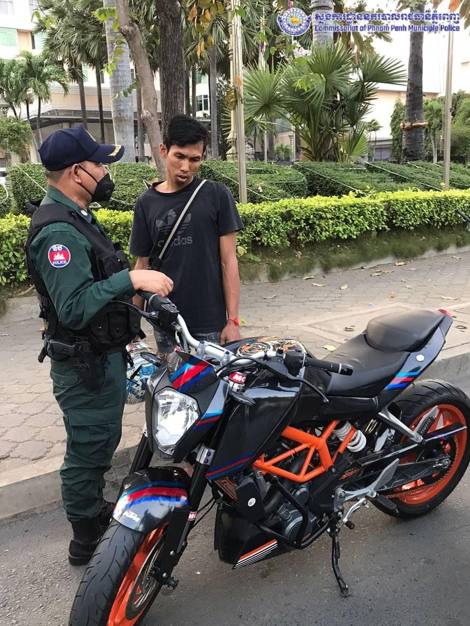 ដែលធ្វើឲ្យមានសម្លេងខ្លាំង រំខានដល់អ្នកដទៃ នៅចំណុចភូមិទី១ ក្នុងតំបន់បឹងកក់ក្បែរកន្លែងវាយកូនហ្គោល សង្កាត់ស្រះចក ខណ្ឌដូនពេញ រាជធានីភ្នំពេញ ដោយបានធ្វើការណែនាំអប់រំ ធ្វើកិច្ចសន្យា និងផាកពិន័យតាមច្បាប់ ហើយតម្រូវឲ្យម្ចាស់ម៉ូតូយករបស់ដើម មកប្តូរនៅមុខសមត្ថកិច្ច ទើបប្រគល់ម៉ូតូឲ្យវិញ៕