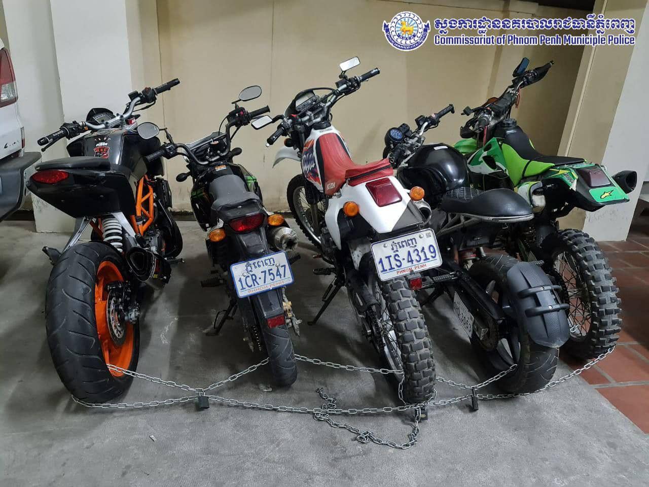 រាជធានីភ្នំពេញ៖ យោងតាមការចុះផ្សាយរបស់ ស្នងការដ្ឋាននគរបាលរាជធានីភ្នំពេញ បានឲ្យដឹងថា នៅថ្ងៃទី១៤ ខែមីនា ឆ្នាំ២០២២ វេលាម៉ោង១៧៖០០នាទី ដោយអនុវត្តតាមការណែនាំ និងបទបញ្ជាជាប្រចាំរបស់ឯកឧត្តម ឧត្តមសេនីយ៍ឯក ស ថេត អគ្គស្នងការរង និងជាស្នងការនគរបាលរាជធានីភ្នំពេញ កម្លាំងនៃអធិការដ្ឋាននគរបាលខណ្ឌដូនពេញ បានធ្វើការបង្រ្កាប និងឃាត់ម៉ូតូកែច្នៃបំពងស៊ីម៉ាំងប្រែនខុសបច្ចេកទេស ចំនួន០៥គ្រឿង (ម៉ូតូធំ ចំនួន០៤គ្រឿង និងម៉ូតូតូច ចំនួន០១គ្រឿង)។