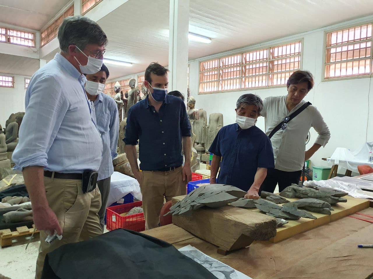 ក្រោយពីបានពិនិត្យការបិទផ្គុំរូបចម្លាក់បានមួយចំនួនជាផ្នែកៗមក ស្ថាប័នខាងលើបានបើកការប្រជុំពិភាក្សាគ្នាតាមប្រព័ន្ធ zoom ជាមួយភាគីពាក់ព័ន្ធ អំពីវិធីសាស្ត្រនៃការផ្គុំតម្លើងបំណែកចម្លាក់ធំៗដែលបានបិទភ្ជាប់មួយចំនួនហើយ។ ការផ្គុំបំណែកចម្លាក់ឡើងវិញនេះ នឹងស្នើប្រើគ្រោងឆ្អឹងដែក ដើម្បីតភ្ជាប់បំណែកទាំងនោះ។ ក្រុមការងារនឹងចេញប្លង់ជួសជុលថ្មីដោយគិតគូរលម្អិតលើគ្រោងឆ្អឹងដែក និងគណនាទម្ងន់ថ្មដែលគ្រោងឆ្អឹងដែកអាចទ្របាន ហើយនឹងពិភាក្សាគ្នាបន្តទៀតមុនឈានដល់សម្រេចការជួសជុល ៕