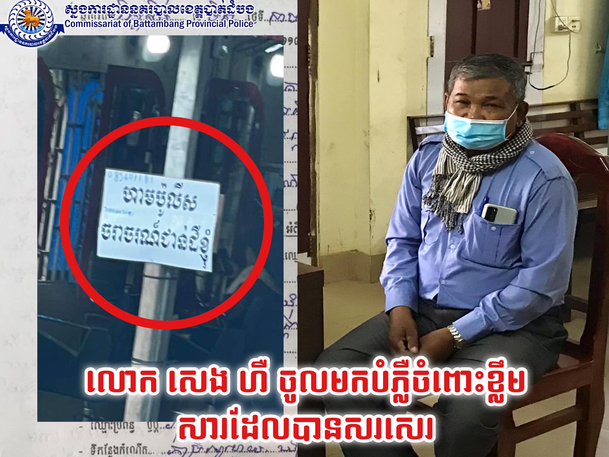 នៅរសៀលថ្ងៃទី៣១ ខែមីនា ឆ្នាំ២០២២ វេលាម៉ោង ១៥និង០០នាទី បុរសម្នាក់ដែលអះអាងថា រូបគាត់ជាអ្នកសរសេរខ្លឹមសារខាងលើដាក់នៅមុខផ្ទះនោះគឺមានឈ្មោះសេង ហឺ អាយុ ៧២ឆ្នាំ រស់នៅភូមិរំចេក៤ សង្កាត់ រតនៈ ក្រុងបាត់ដំបង ខេត្តបាត់ដំបងមានភារកិច្ចជាសមាជិកក្រុមប្រឹក្សាសង្កាត់រតនៈ ក្រុងបាត់ដំបង។