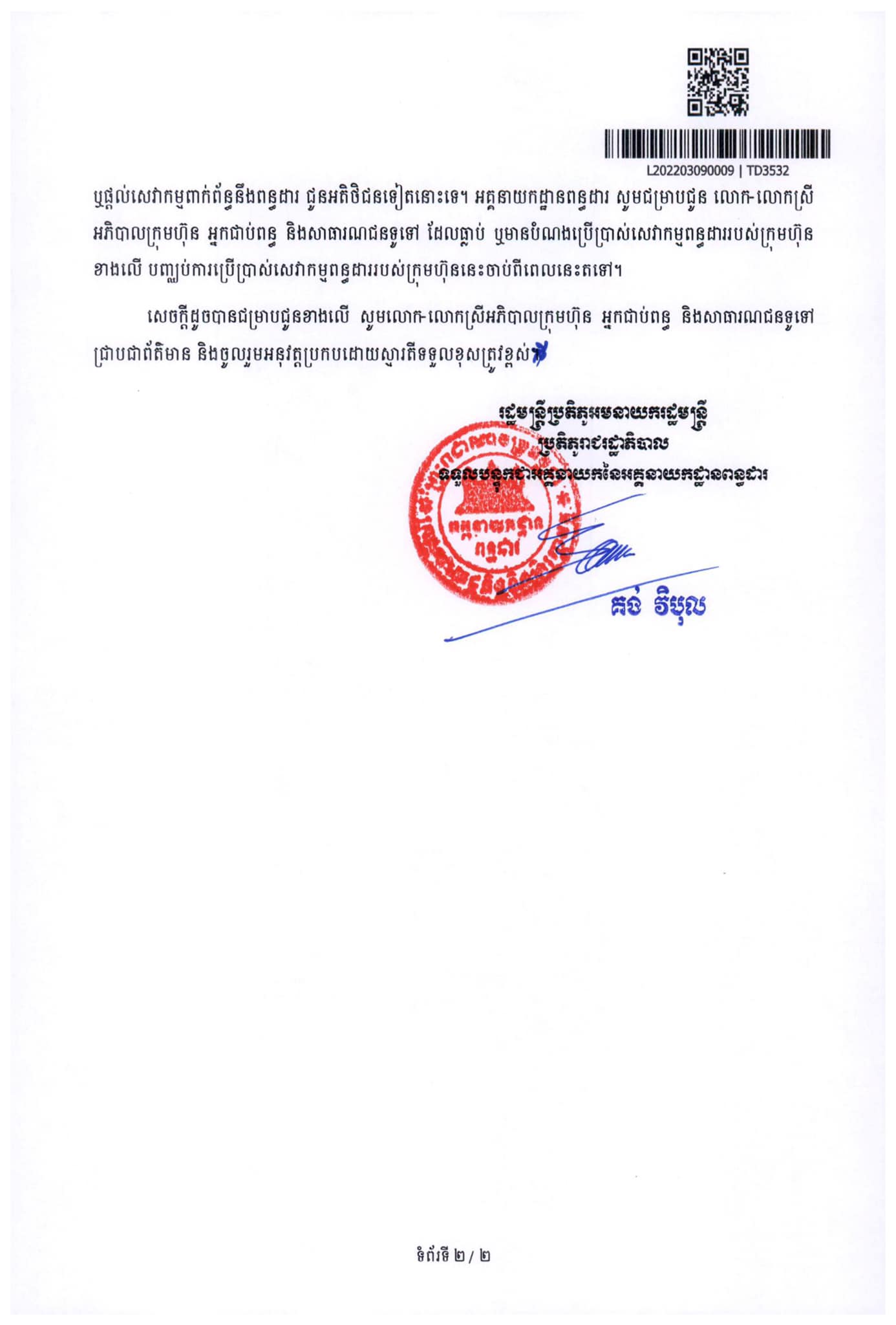 ក្រសួងសេដ្ឋកិច្ច សម្រេចដកហូតអាជ្ញាប័ណ្ណភ្នាក់ងារសេវាកម្មពន្ធដារជាស្ថាពររបស់ក្រុមហ៊ុន ហ្វេតថាក់ ប៊ីហ្សនេស សឹលូសិន ឯ.ក ដែលល្មើសច្បាប់ កេងបន្លំប្រាក់ពន្ធរដ្ឋ