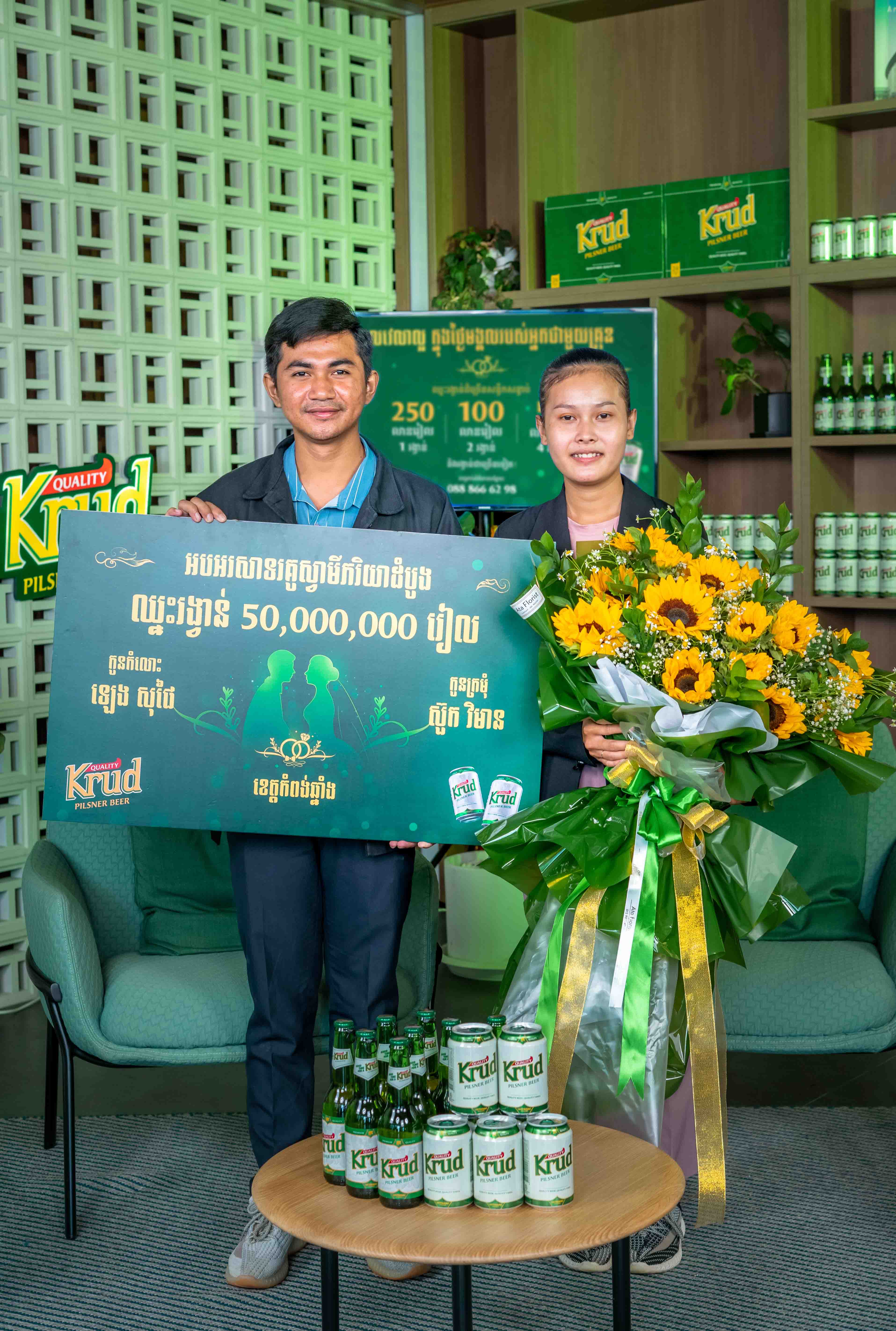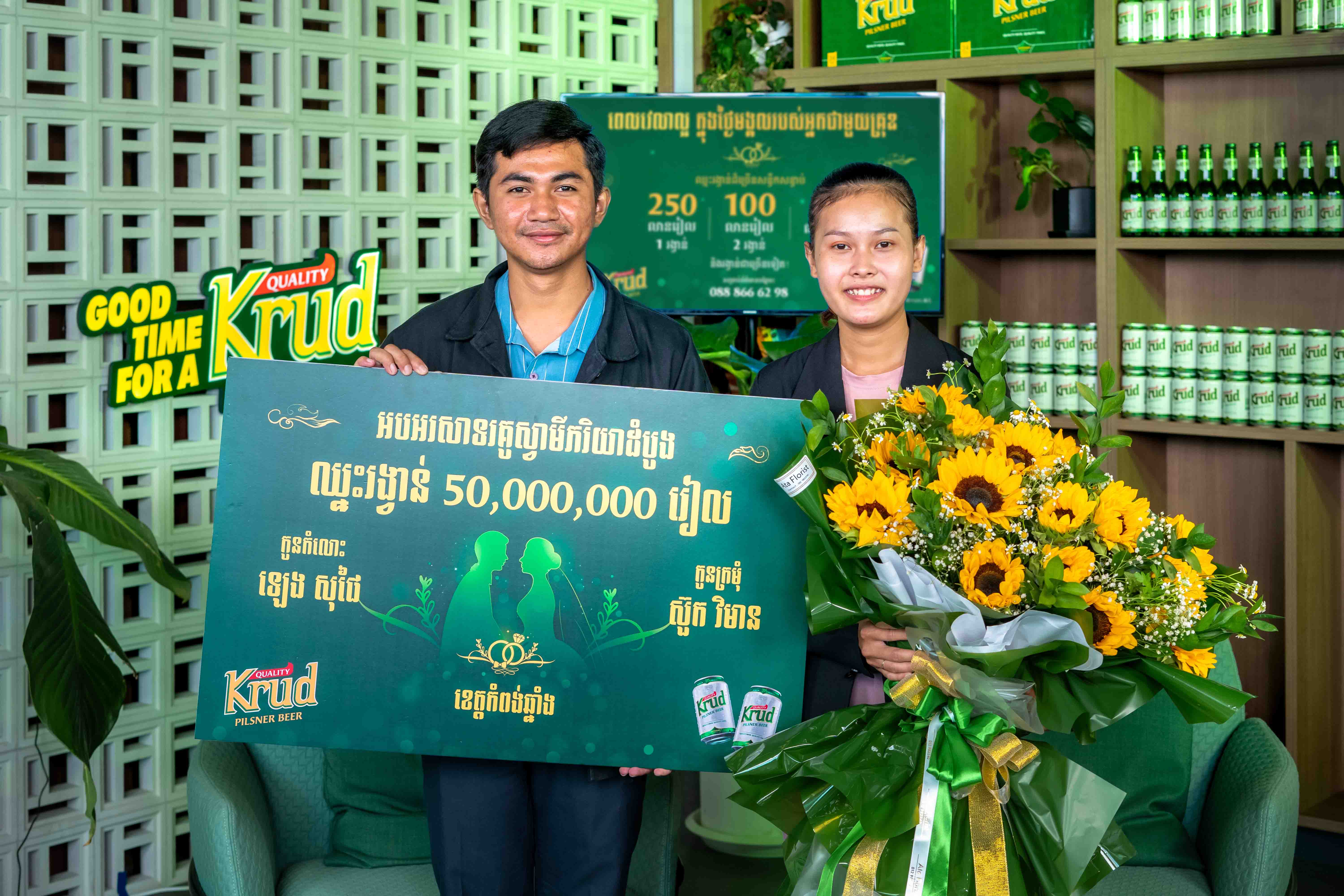 គូស្វាមីភរិយាដំបូងមកពី ខេត្តកំពង់ឆ្នាំទទួលសំណាង ឈ្នះ “៥០លានរៀល” ក្នុងកម្មវិធី “ពេលវេលាល្អក្នុងថ្ងៃមង្គលរបស់អ្នក ជាមួយស្រាបៀរគ្រុឌ”