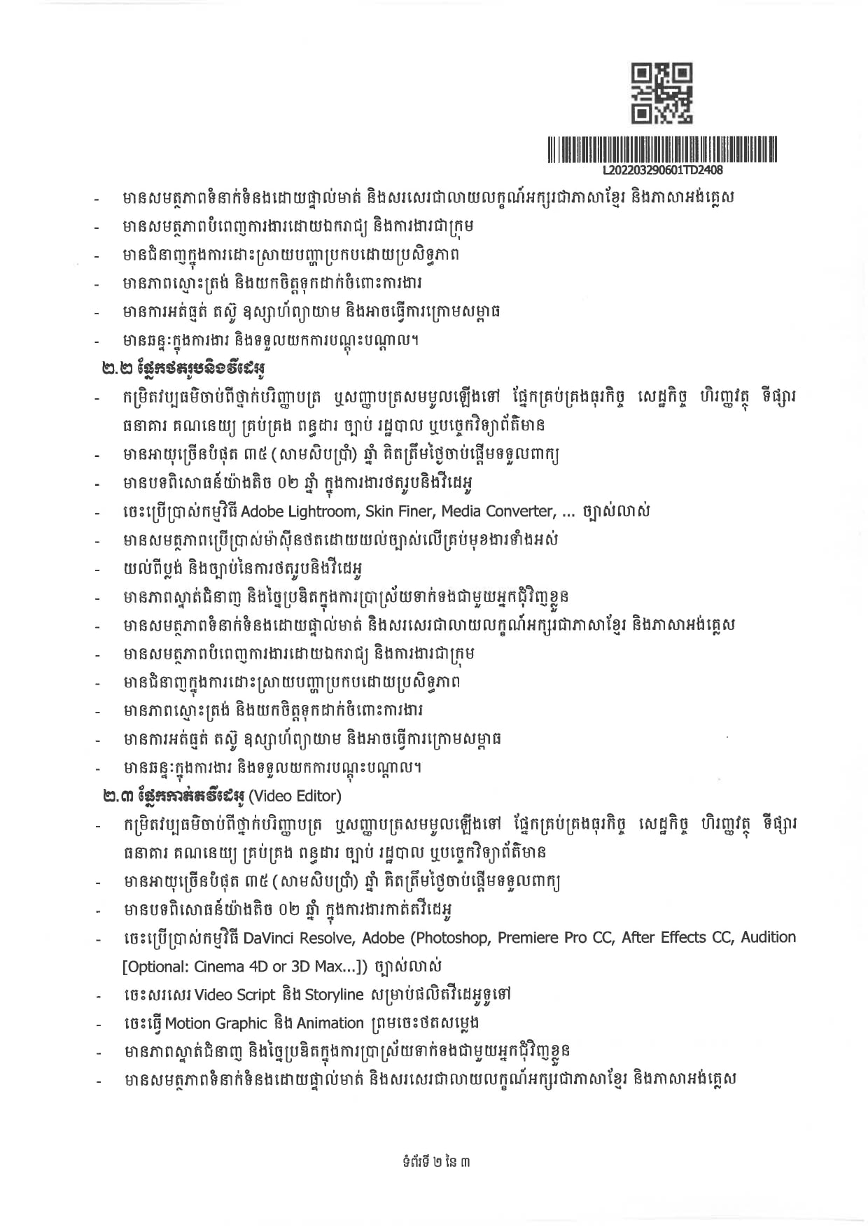 ៤.ផ្នែករចនាក្រាភីក ផ្នែកថតរូបនិងវីដេអី និងផ្នែកកាត់តវីដេអូ ០៣នាក់ ។