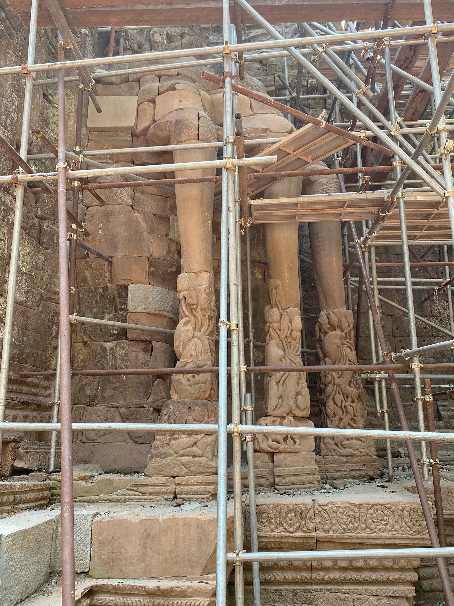 ដោយសារអាយុកាល អាកាសធាតុ ធម្មជាតិនិងកត្តាមនុស្សបណ្តាលឱ្យបង្កាន់ដៃរបស់ខ្លោងទ្វារដែលមានរូបយក្ស និងទេវតាជាច្រើនដួលរលំហើយរចនាសម្ព័ន្ធរបស់ខ្លោងទ្វារមួយភាគធំ ដូចជា រូបដំរីទាំង៤ និងមុខព្រហ្មជាដើមបានរងការខូចខាតខ្លាំង ដែលតម្រូវឱ្យធ្វើការជួសជុលនិងសង្គ្រោះជាចាំបាច់។