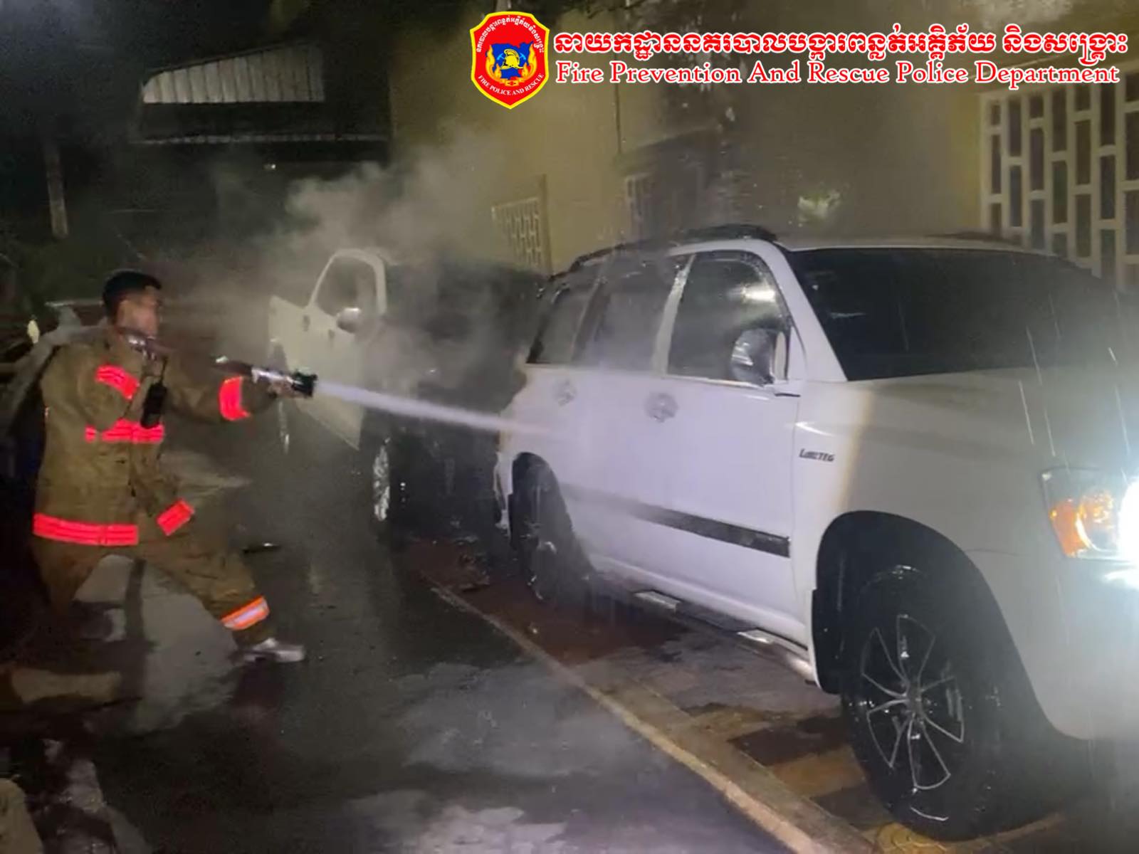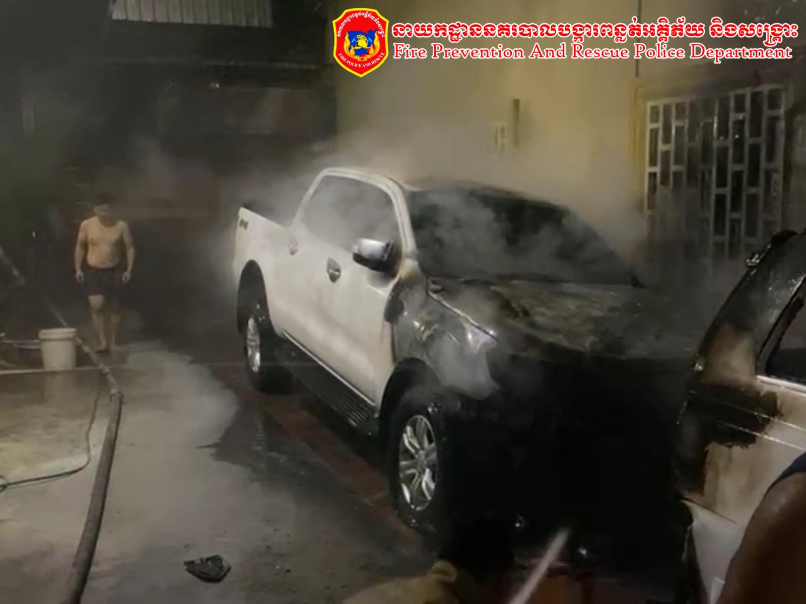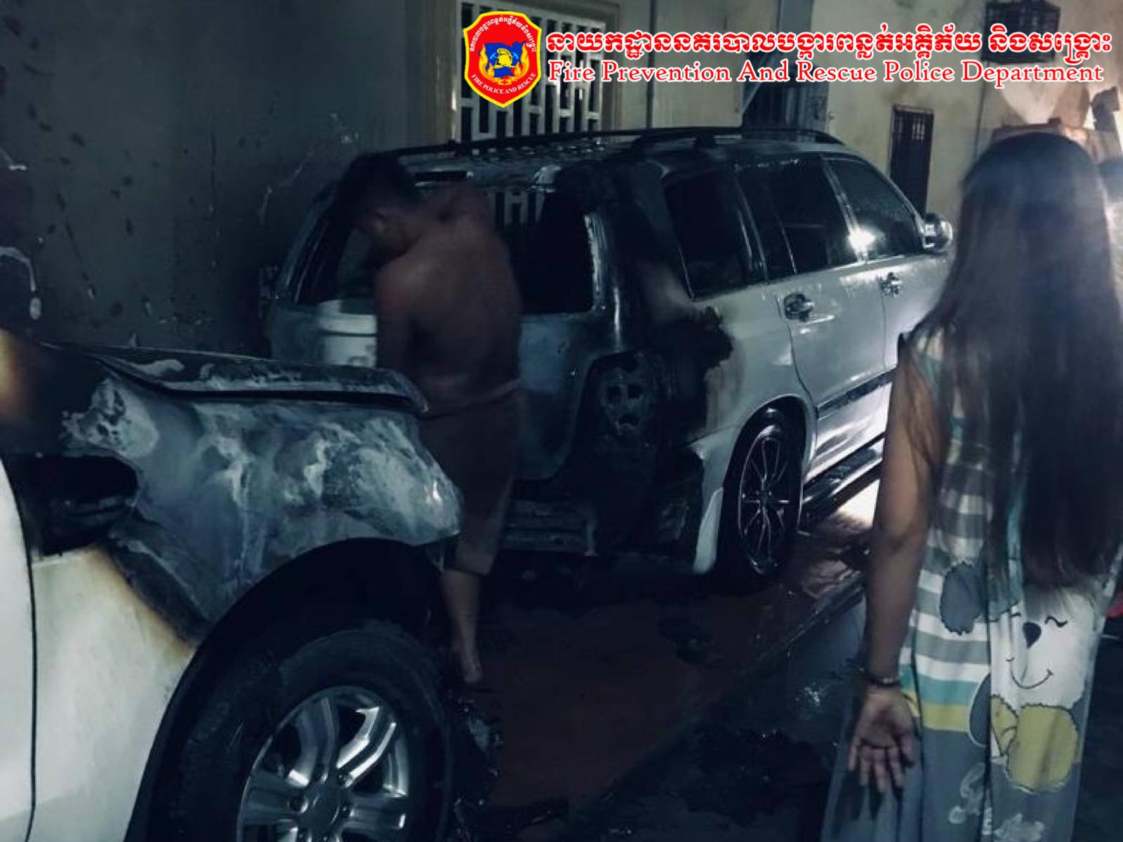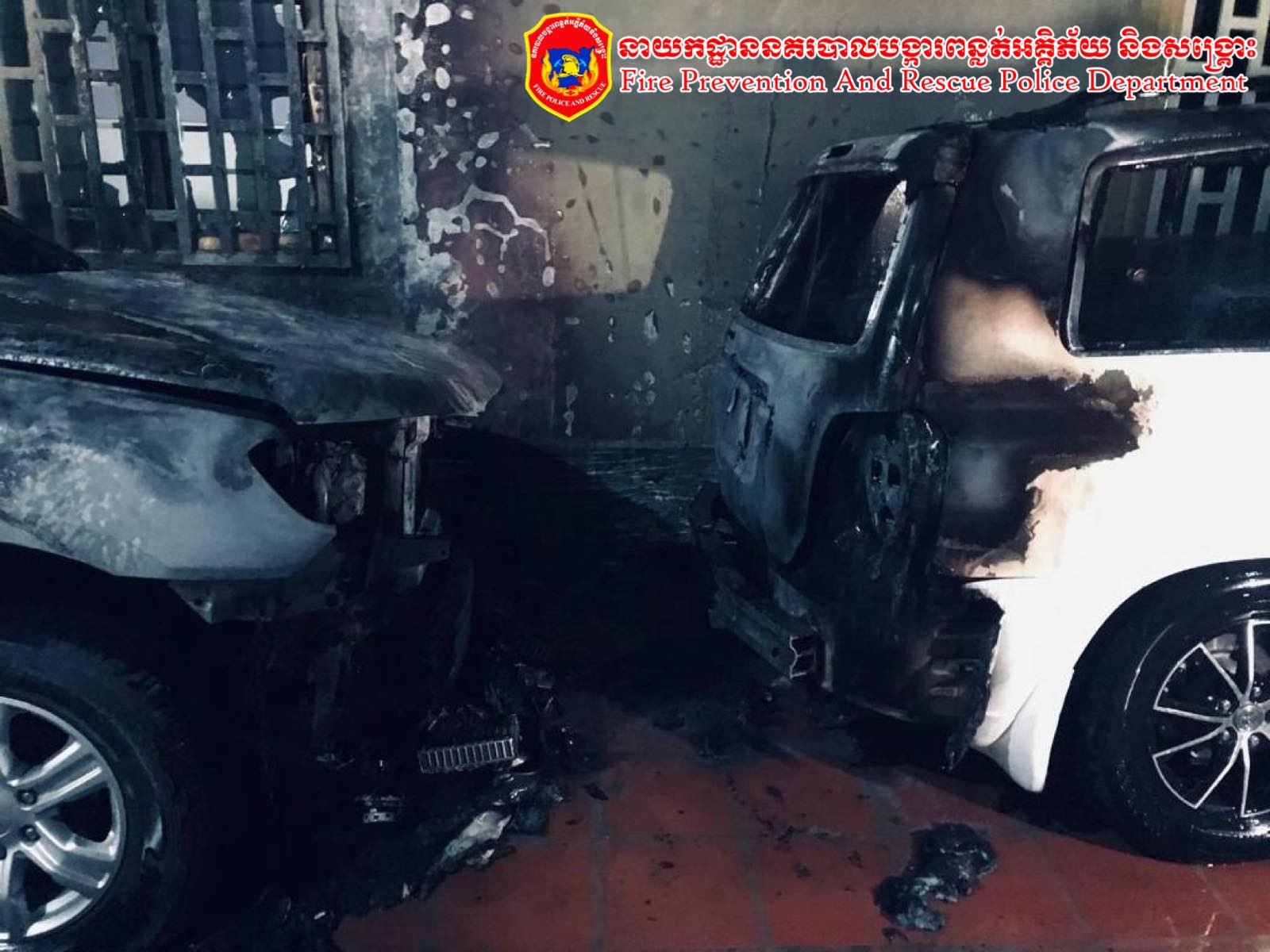 + ខូចខាតសម្ភារៈ៖ ឆេះរថយន្តចំនួន ០២គ្រឿងប្រហែល៤០% នឹងពុំបណ្ដាលអោយឆេះរាលដាលដល់អ្នកក្បែរខាងឡើយ។