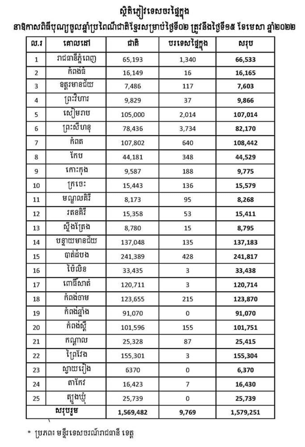 ប្រភព៖ ក្រសួងទេសចរណ៍ Ministry of Tourism, Cambodia