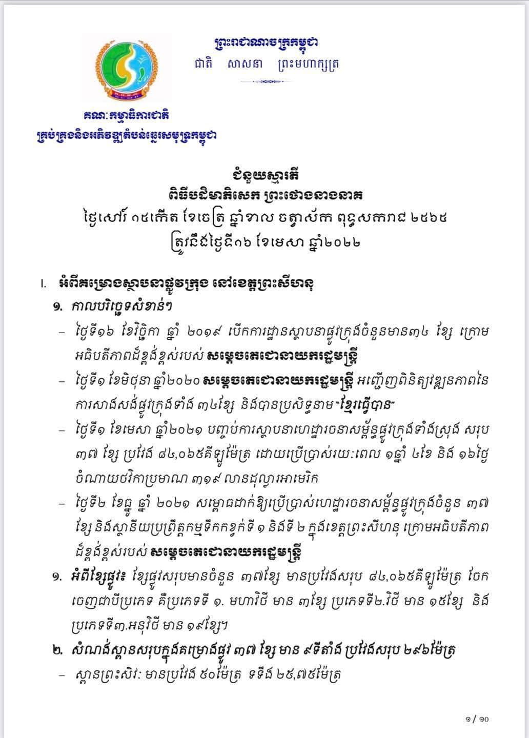 សូមអានសេចក្ដីព័ត៌មានលម្អិតបន្ថែមអំពីពិធីបដិមាភិសេក​ “ព្រះថោងនាងនាគ​” និងការអភិវឌ្ឍនៅខេត្តព្រះសីហនុ​ ដូចខាងក្រោម៖