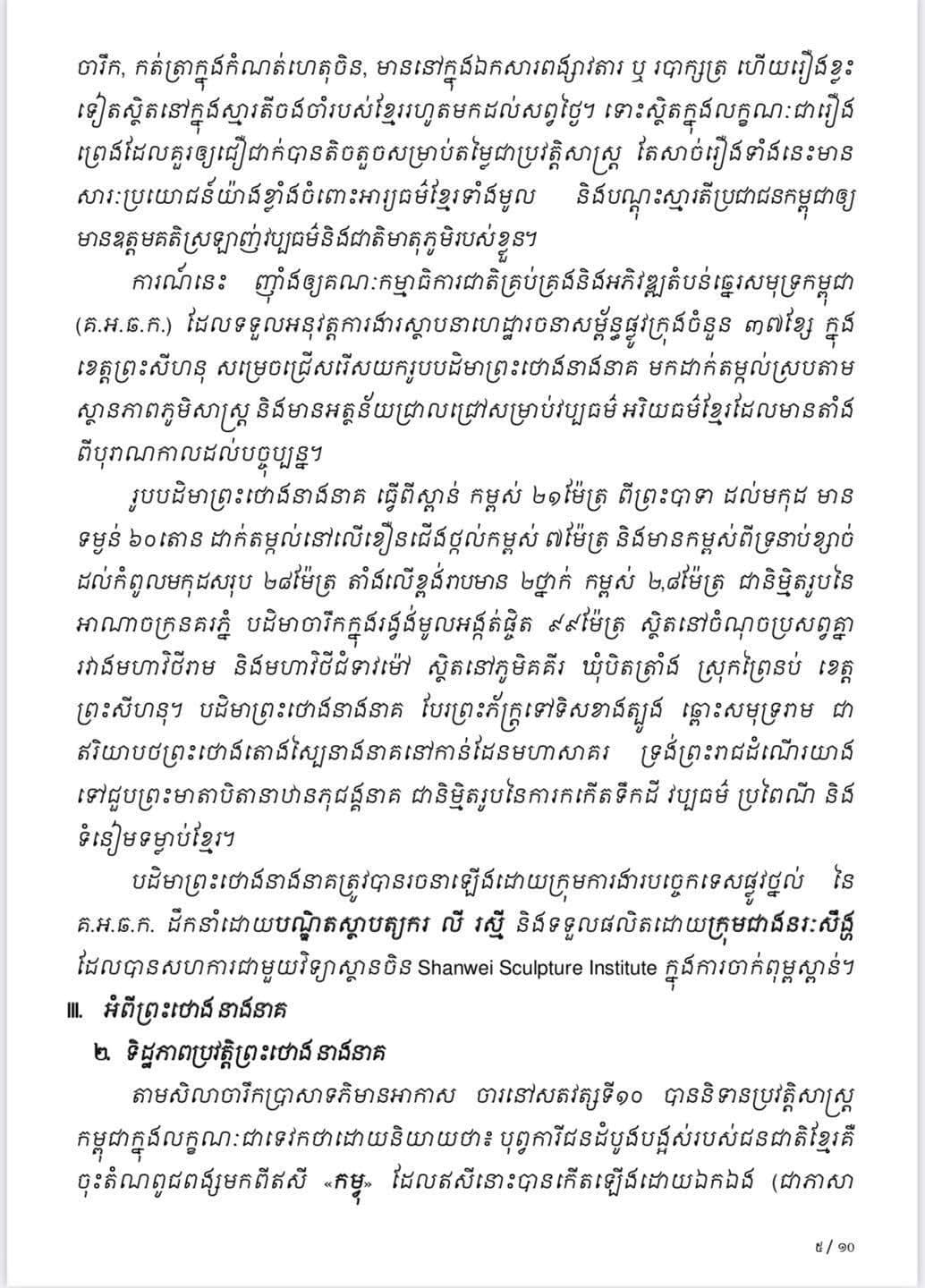 ៣.បដិមាព្រះថោងនាងនាគ ធ្វើពីស្ពាន់ កម្ពស់ ២១ម៉ែត្រ គ្រោងធ្វើពិធីបដិមាភិសេកនាថ្ងៃទី១៦ ខែមេសា ឆ្នាំ២០២២។