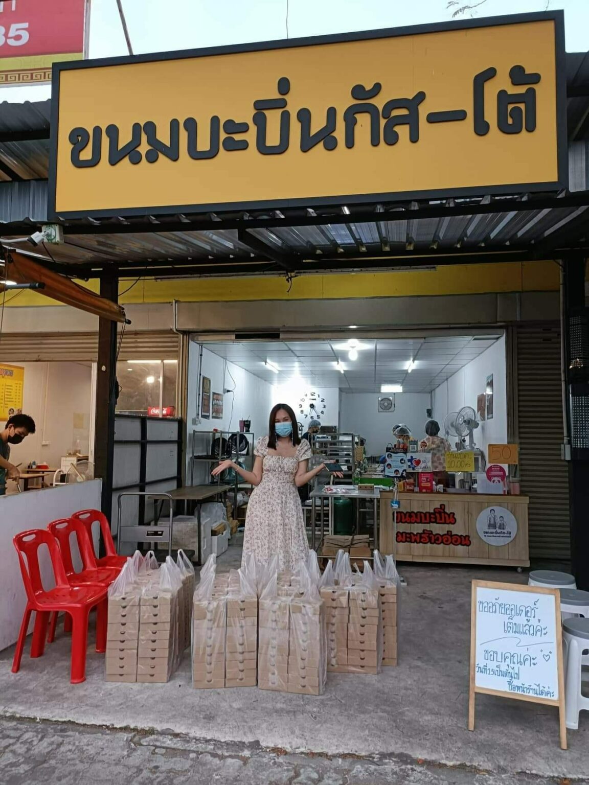 ថៃ៖ អ្នកនាង អម យុផាផនមីកុដផាន់ វ័យ៤០ឆ្នាំ បច្ចុប្បន្នជាម្ចាស់ហាងនំ Ba Bin Gus-To( បាបិនកាសតូ) ដែលកំពុងទទួលបានភាពល្បីល្បាញយ៉ាងខ្លាំងទាំងក្នុង និងក្រៅសង្គមអនឡាញ។ អ្នកនាង អម បានរៀបរាប់ថា ៖