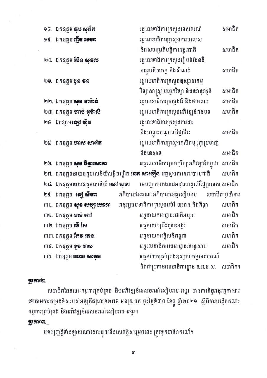 ខាងក្រោមនេះ ជាសេចក្ដីសម្រេច ស្ដីពីការតែងតាំងសមាសភាពគណៈកម្មការគ្រប់គ្រង និងអភិវឌ្ឍន៍ទេសចរណ៍សៀមរាប-អង្គរ៖
