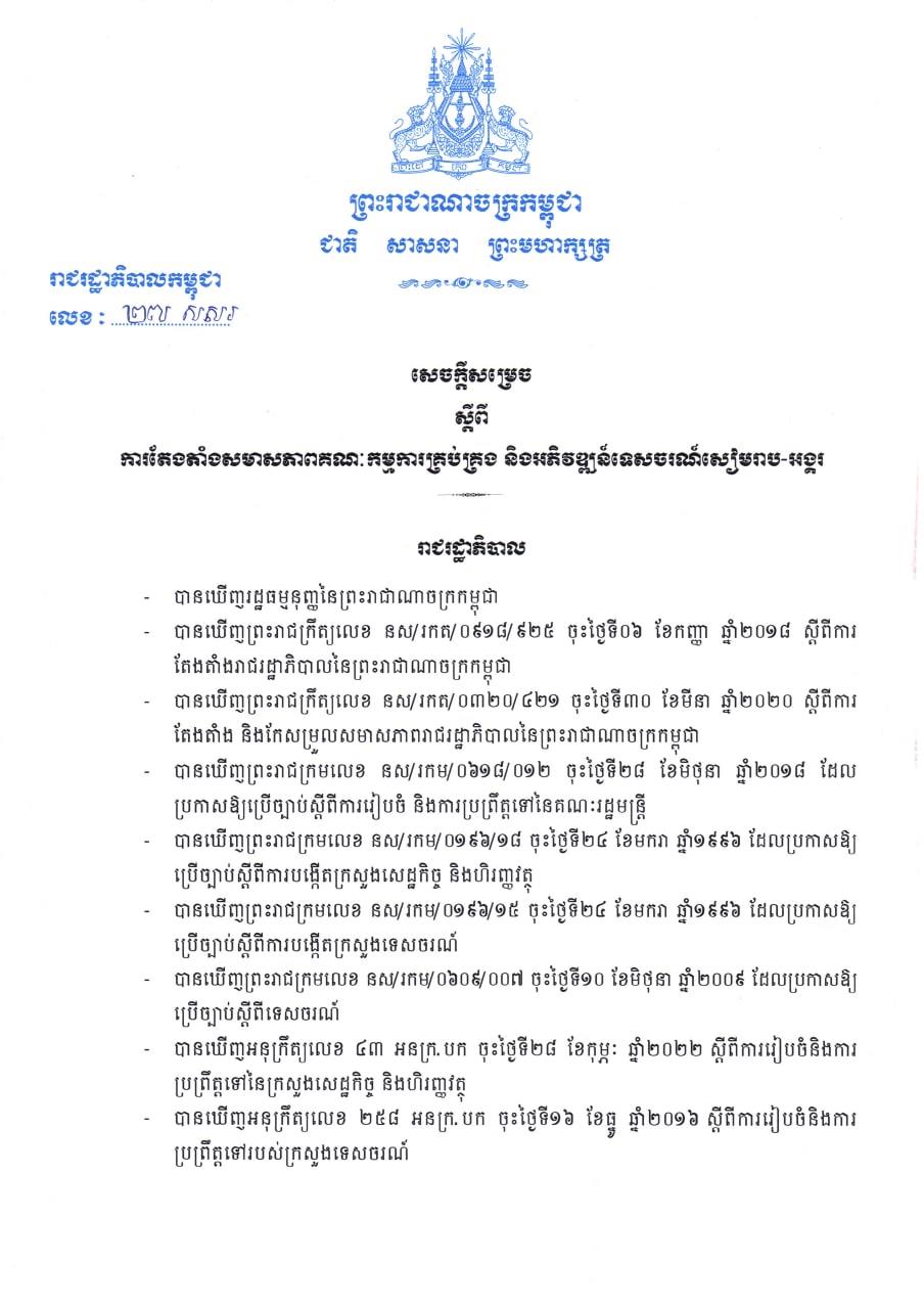 រាជរដ្ឋាភិបាល ចេញសេចក្តីសម្រេចតែងតាំងសមាសភាពគណៈកម្មការគ្រប់គ្រង និងអភិវឌ្ឍន៍ទេសចរណ៍សៀមរាប-អង្គរ