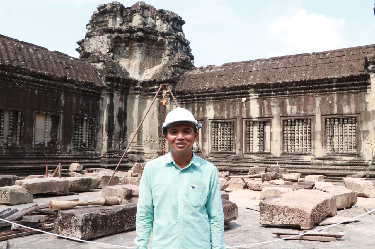 លោកមុនី បន្តទៀតថា ក្នុងពេលជួសជុលតួប្រាង្គបាកាណនៃប្រាសាទអង្គរវត្តនេះដែរ ក្រុមការងារបានរកផ្គុំថ្ម រៀបចំថ្មដែលនៅរាយប៉ាយជុំវិញខឿន ដើម្បីរកកន្លែងដើមរបស់វាហើយអាចនឹងយកថ្មទាំងនោះ ទៅរៀបចូលនៅកន្លែងដើមវិញបានមួយចំនួនធំ។ ជាមួយគ្នានេះដែរ ក្រុមការងារក៏បានជួយទល់ទ្រសរសរណាដែលមានសភាពទ្រុឌទ្រោមថែមទៀតផង។