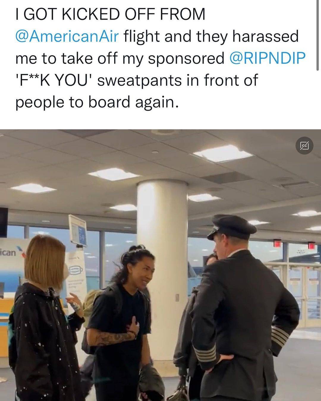 លុះក្រោយពីនាងបានចុះពីលើយន្តហោះហើយទើបសមត្ថកិច្ចបានប្រាប់ខ្ញុំថា «ខ្ញុំស្លៀកខោមិនសមរម្យព្រមទាំងធ្វើអោយមិត្តរួមដំណើរមិនសប្បាយចិត្ត» ចុងក្រោយខ្ញុំត្រូវស្លៀកខោមួយនេះបញ្រ្ចាសវិញគឺមានន័យថា ស្លៀកខោដដែលដោយត្រឡប់ផ្នែកអក្សរចូលក្នុងវិញ ទើបសមត្ថកិច្ចព្រមអោយខ្ញុំឡើងយន្តហោះបាន។ ចំពោះហេតុការណ៍នេះបានធ្វើអោយជើងហោះហើររបស់ខ្ញុំបានពន្យាអស់រយៈពេល១ម៉ោង ហើយក៏បានធ្វើអោយប៉ះពាល់ដល់មិត្តរួមដំណើររបស់ខ្ញុំត្រូវរងផលប៉ះពាល់ទៅជាមួយផងដែរ។ ជាចុងក្រោយDj Soda បានប្រកាសថា ខ្ញុំស្បថថាឈប់ជ្រើសរើសក្រុមហ៊ុនអាកាសចរណ៍ American Airlines ទៀតឡើយ ហើយនាងក៏សង្ឃឹមថានឹងមិនមាននរណាត្រូវជួបហេតុការណ៍ដ៏អាម៉ាស់នេះទៀតឡើយ៕