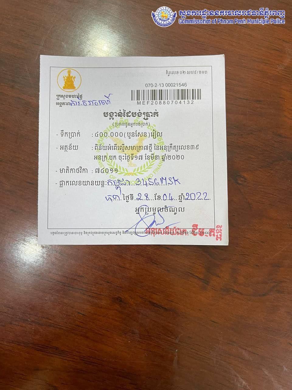 ចំពោះករណីនេះគឺជារឿងបុគ្គល ហើយមន្ត្រីរូបនេះក៏ត្រូវបានសមត្ថកិច្ចនៃការិយាល័យចរាចរណ៍ផ្លូវគោក នាំយកមកធ្វើការផាកពិន័យតាមច្បាប់ ធ្វើកិច្ចសន្យាណែនាំអប់រំ ក៏ដូចជាការដាក់វិន័យរបស់កងកម្លាំងនគរបាលជាតិផងដែរ ៕
