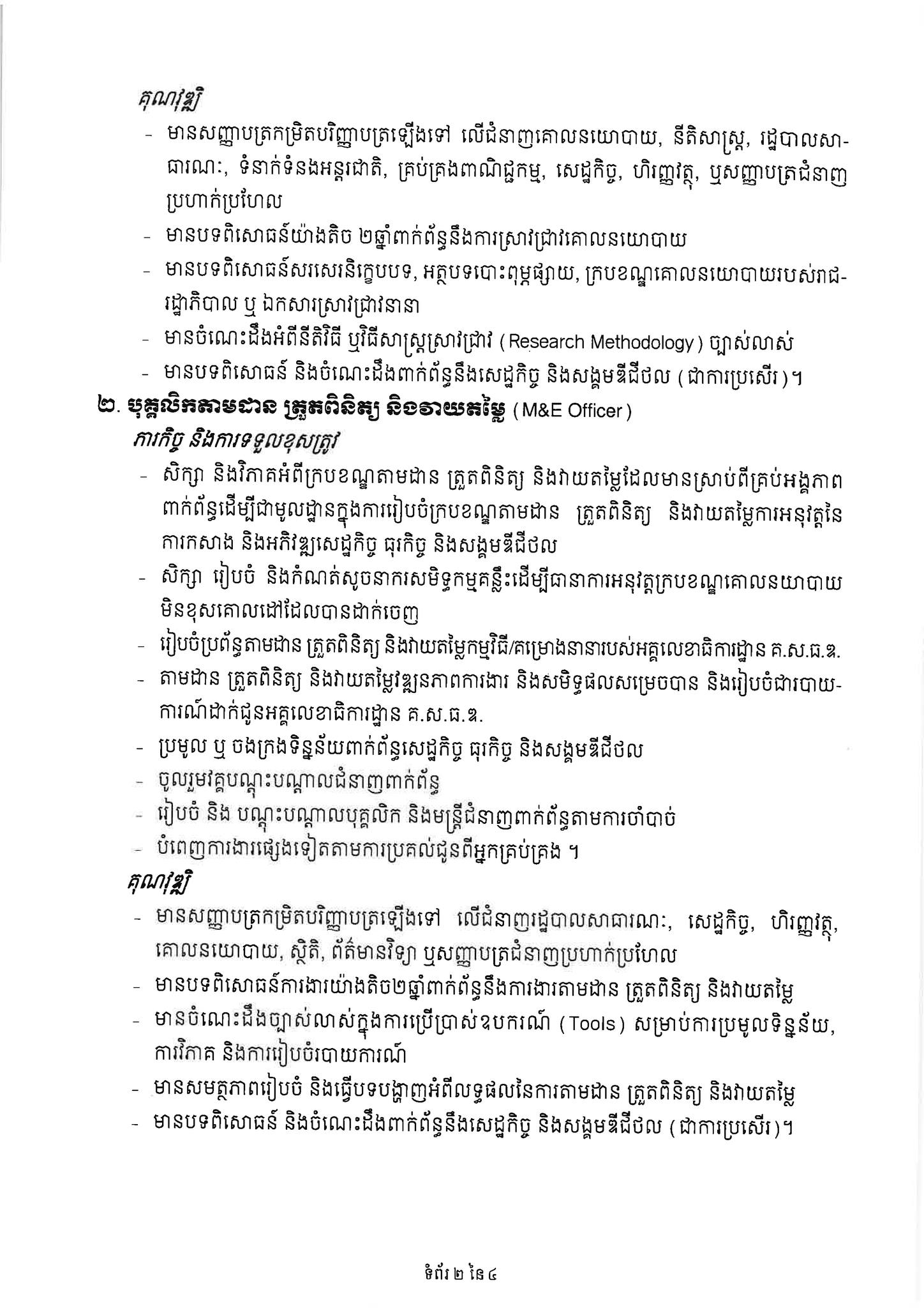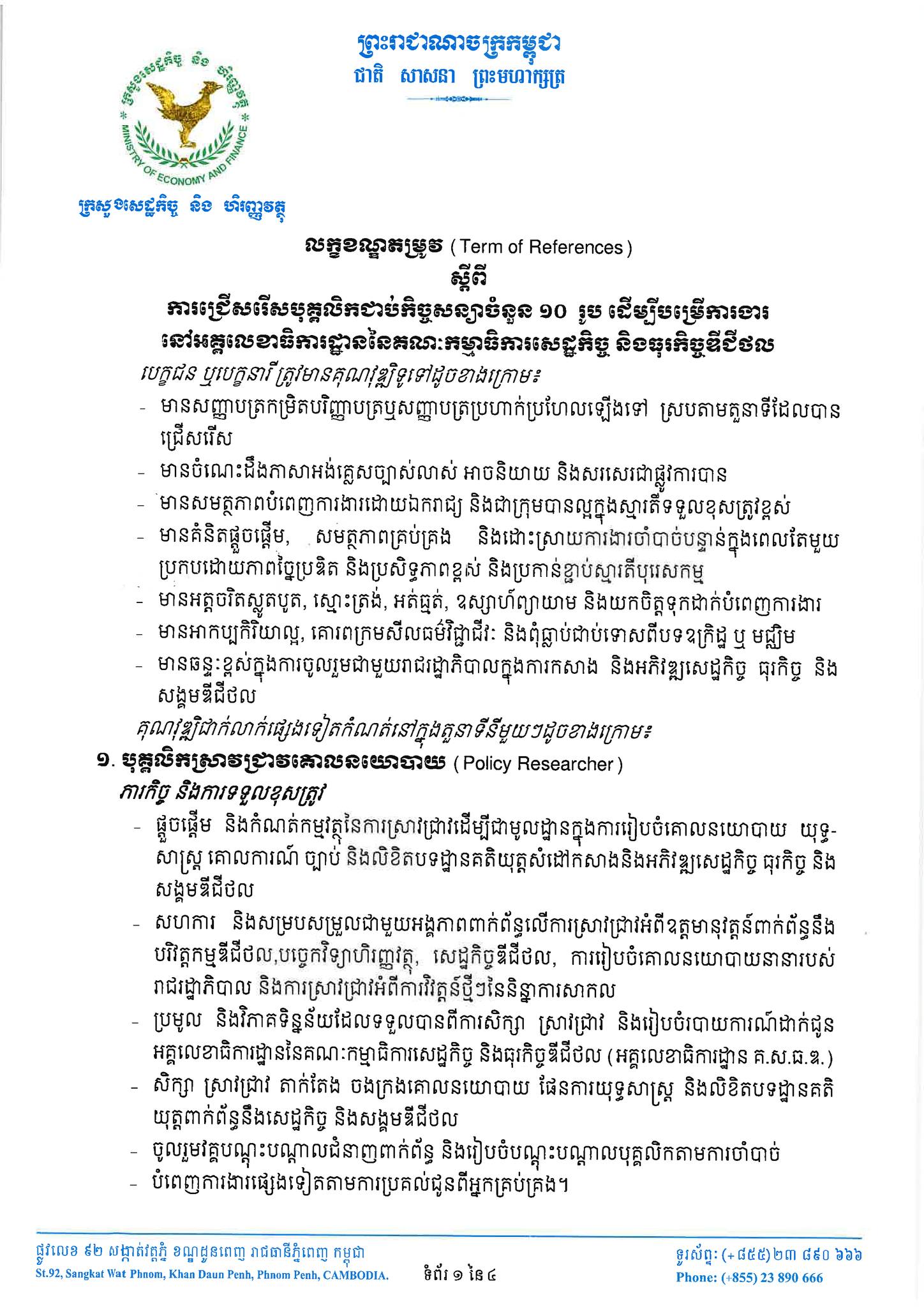 -បុគ្គលិកស្រាវជ្រាវគោលនយោបាយ (Policy Researcher) ចំនួន ០៣រូប។