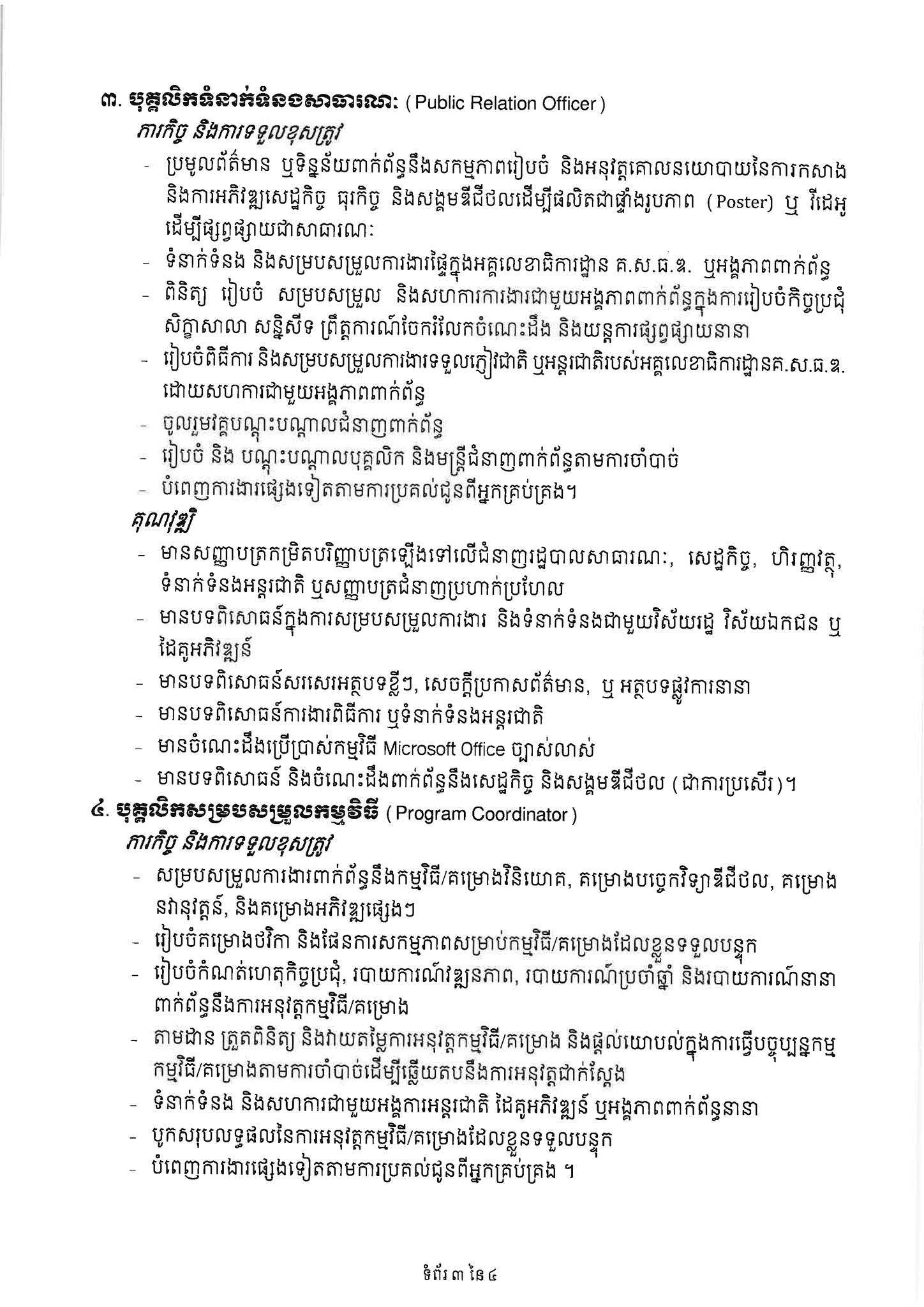 -បុគ្គលិកទំនាក់ទំនងសាធារណៈ (Public Relation Officer) ចំនួន ០២រូប។