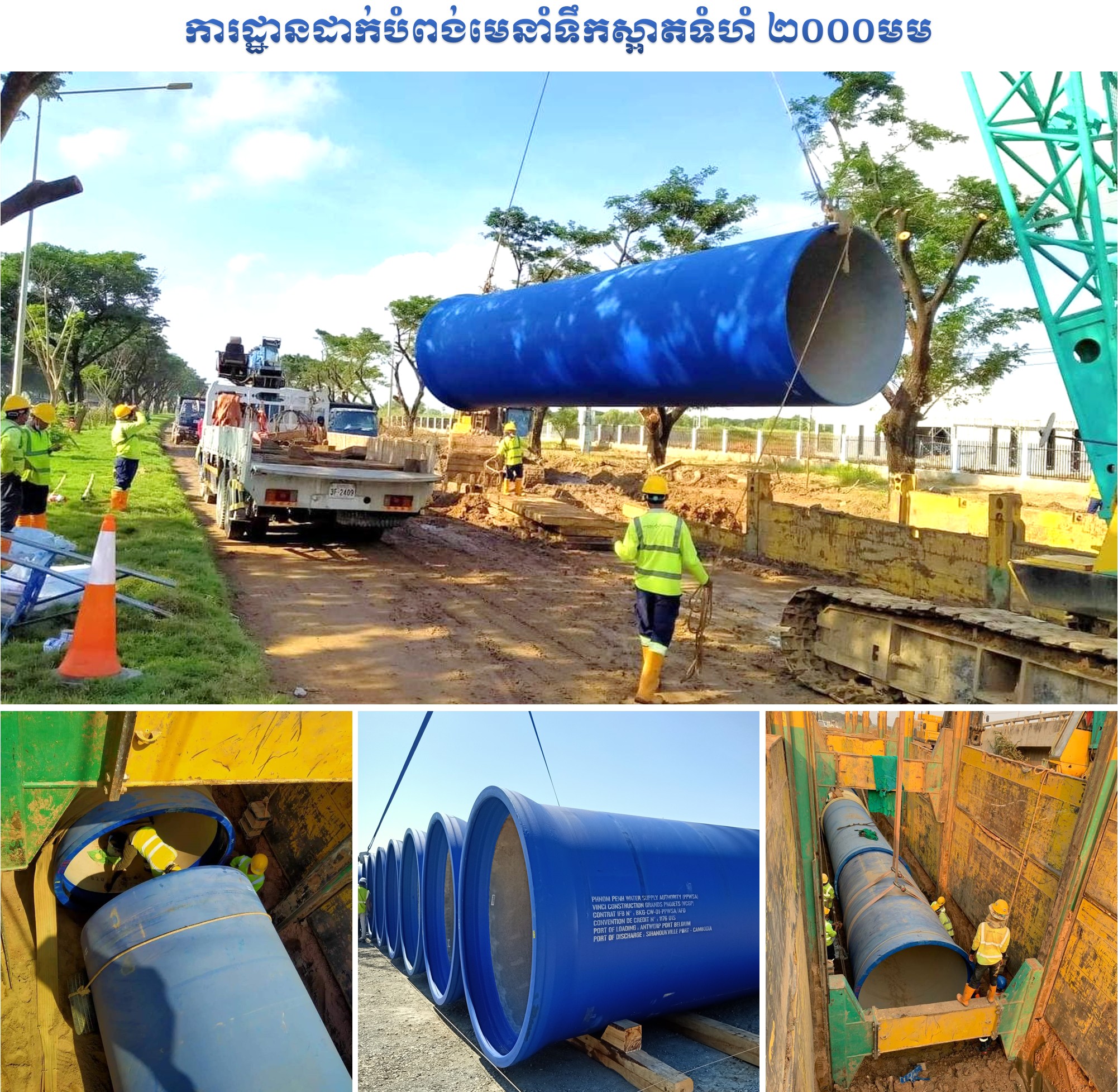 -ការងារដាក់បំពង់មេនាំទឹកស្អាតទំហំ ២០០០មមម ប្រវែង ៧គម សម្រេចបាន ៩០% ។