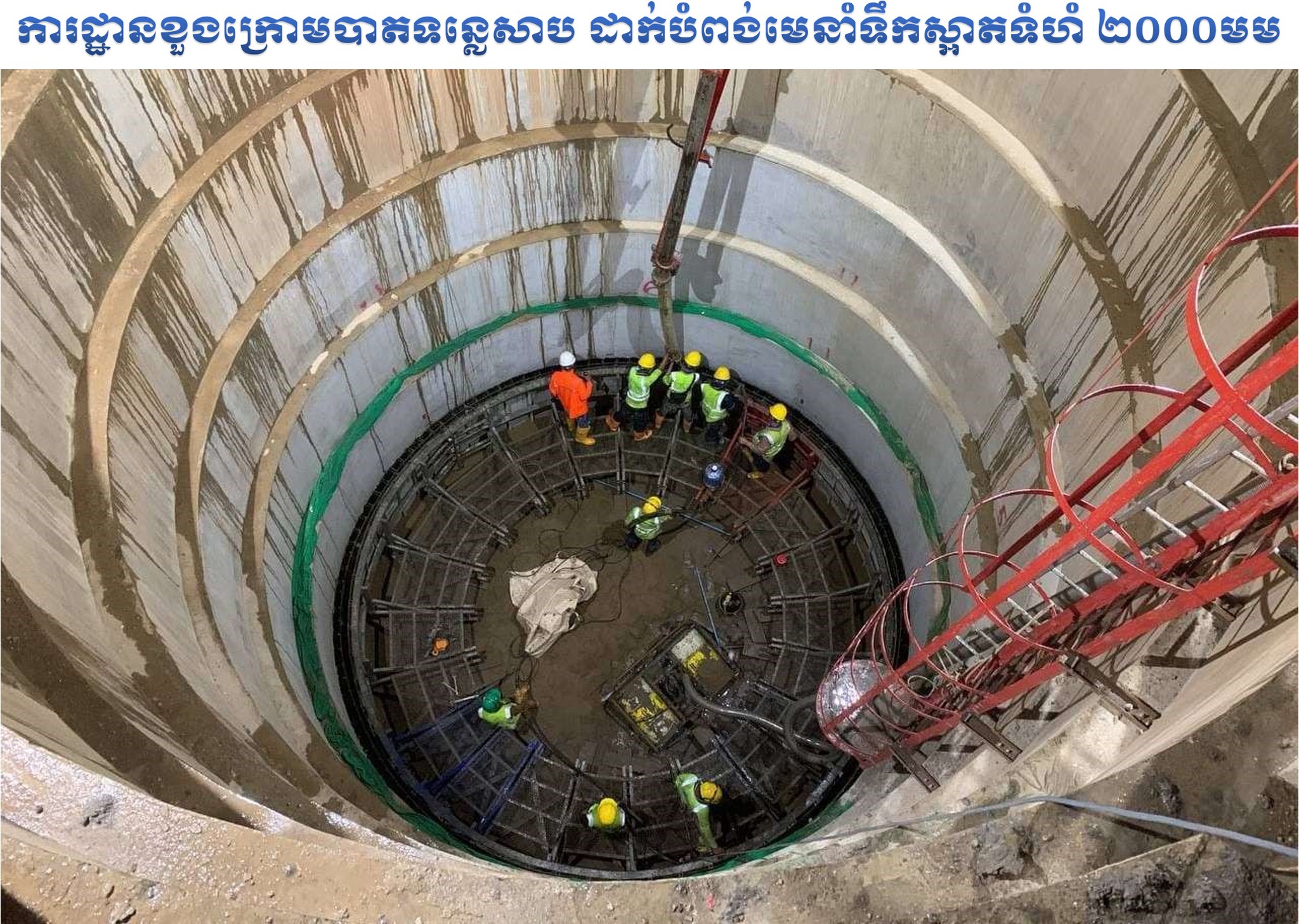 -ការងារខួងក្រោមបាតទន្លេសាបដាក់បំពង់មេនាំទឹកស្អាតទំហំ ២០០០មម សម្រេចបាន ៥០% ។