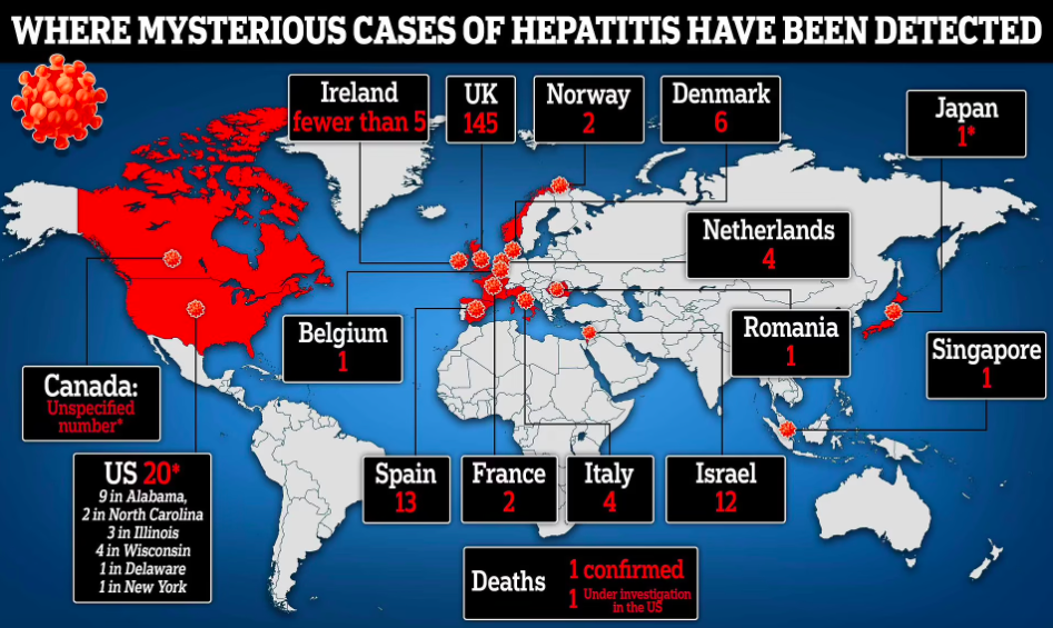ខណៈពេលដែលមូលហេតុនៃជំងឺនេះមិនទាន់ត្រូវបានកំណត់នៅឡើយ អ្នកស៊ើបអង្កេតកំពុងសិក្សាពីសែស្រឡាយនៃមេរោគដែលហៅថា adenovirus ដែលជាវីរុសបណ្តាលឱ្យមានជំងឺជាច្រើន រួមទាំងជំងឺផ្តាសាយទូទៅផងដែរ។ ការផ្ទុះឡើងនៃជំងឺរលាកថ្លើមស្រួចស្រាវចំពោះកុមារ បានទាមទារឱ្យមានការប្តូរថ្លើមយ៉ាងហោចណាស់ ១៧ ករណី ផ្សេងទៀត នៅទូទាំងពិភពលោក នេះបើយោងតាមអង្គការសុខភាពពិភពលោក៕