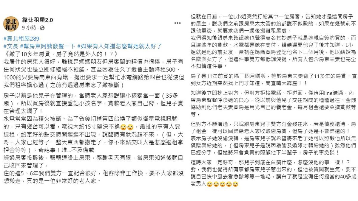តាមប្រភពព័ត៌មានរបស់ ettoday បានឱ្យដឹងថា ហេតុការណ៍មួយបានកើតឡើងនៅតៃវ៉ាន់ ដោយមានប្តីប្រពន្ធ២នាក់ អាយុជាង៧០ឆ្នាំ បានរំលោះផ្ទះរយៈពេលជាង១១ឆ្នាំ ដោយប្រើប្រាក់សោធននិវត្តន៍សម្រាប់កក់ផ្ទះ។ដើម្បីបានផ្ទះមកជាកម្មសិទ្ធិ ពួកគាត់បានដាក់ឈ្មោះកូនប្រុសបង្កើតជាឈ្មោះម្ចាស់ផ្ទះ ប៉ុន្តែក្រោយការរំលោះផ្ទះបានចប់សប់គ្រប់ដោយប្រើរយៈពេលជា១១ឆ្នាំ ស្រាប់តែដឹងការពិតថា ផ្ទះដែលបានរំលោះធ្លាក់ទៅក្នុងដៃអ្នកដទៃទៅវិញ។