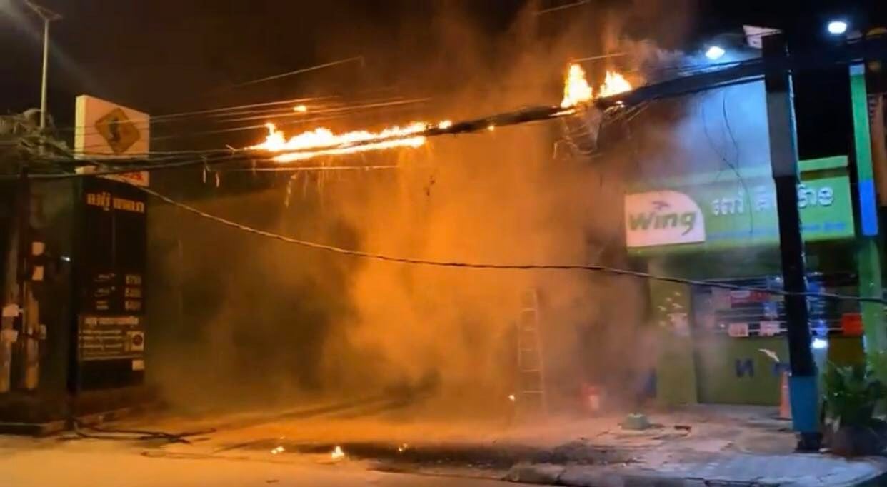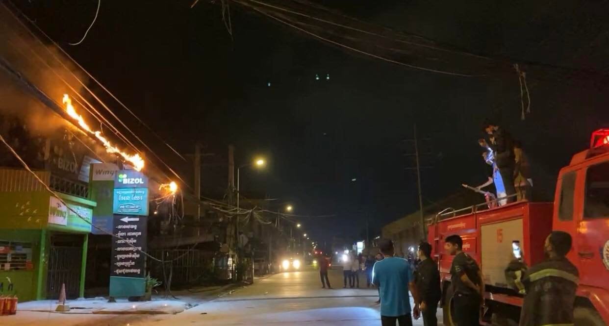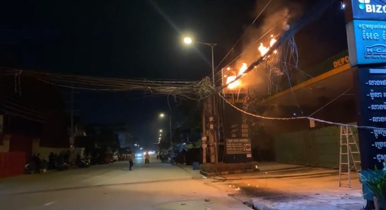 ទុស្សេខ្សែកាបកើតជាអគ្គិភ័យឆាបឆេះ នៅភូមិត្រពាំងឈូក សង្កាត់ទឹកថ្លា ខណ្ឌសែនសុខ បង្កការភ្ញាក់ផ្អើលទាំងយប់
