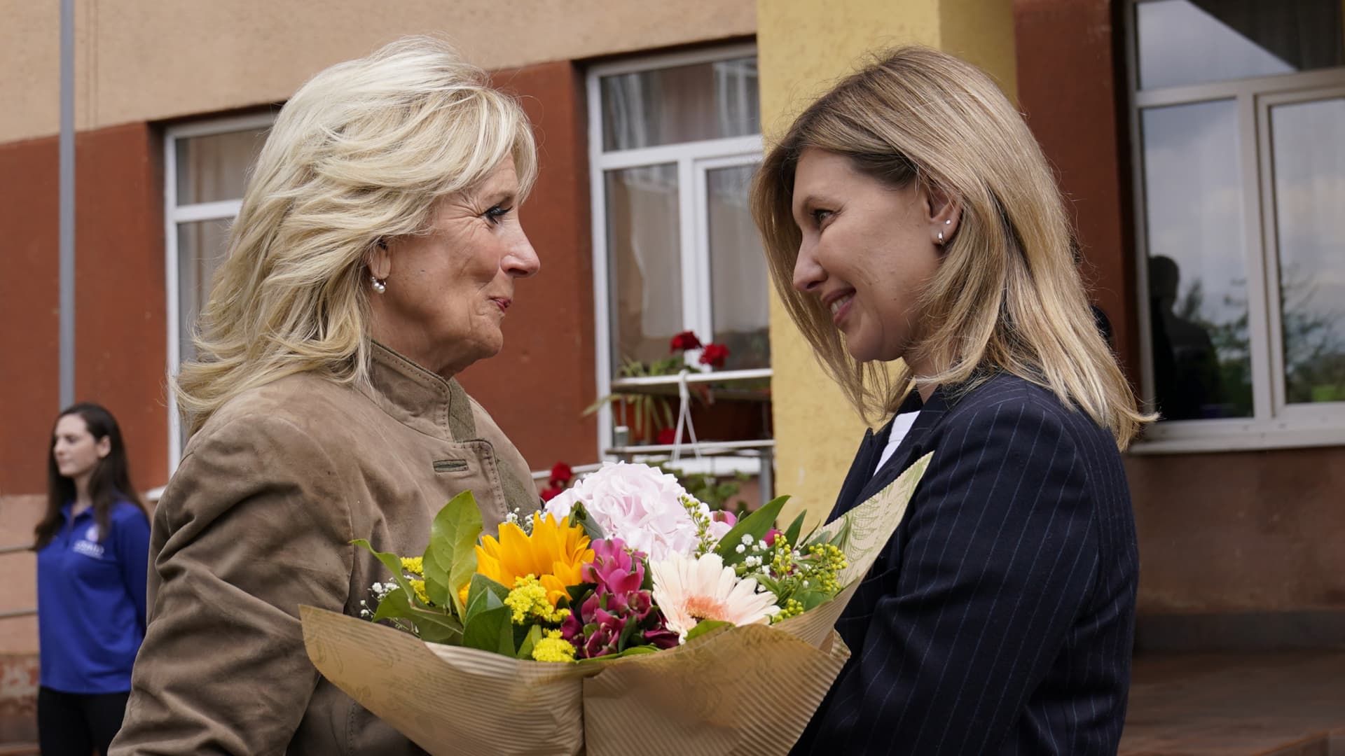 ជំទាវទី១ របស់សហរដ្ឋអាមេរិក គឺលោកស្រី Jill Biden បានធ្វើទស្សនកិច្ចដ៏គួរឱ្យភ្ញាក់ផ្អើលមួយ ទៅកាន់ប្រទេសអ៊ុយក្រែន ដើម្បីជួបជាមួយសមភាគីអ៊ុយក្រែន លោកស្រី Olena Zelenska ។ កិច្ចប្រជុំរបស់ពួកគេបានធ្វើឡើងកាលពីថ្ងៃអាទិត្យនៅឯសាលារៀនមួយ ក្នុងទីក្រុងភាគខាងលិចអ៊ុយក្រែន ក្បែរព្រំដែនជាមួយប្រទេសស្លូវ៉ាគី ដែលបម្រើជាជម្រកសម្រាប់អ្នកជម្លៀសខ្លួន។