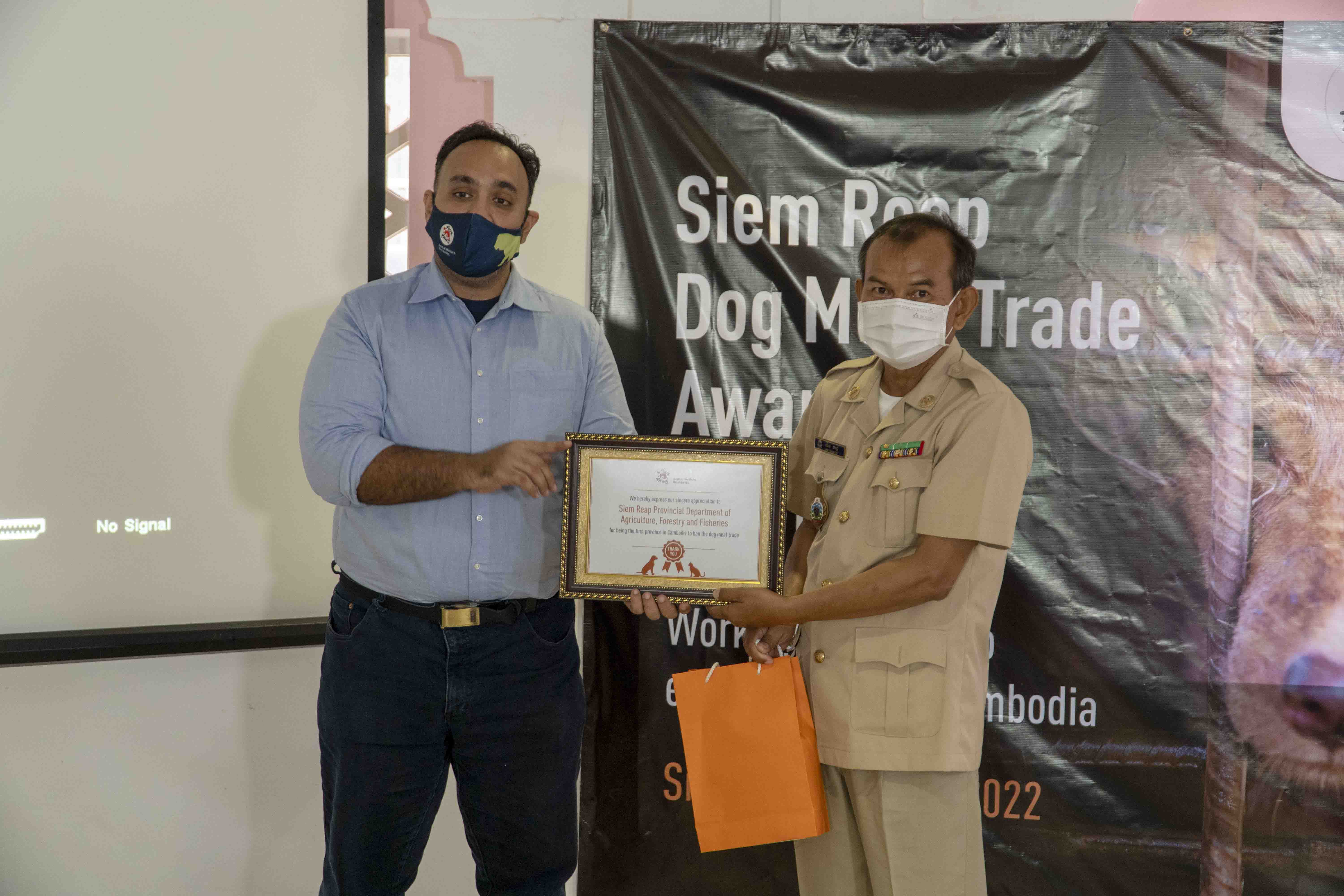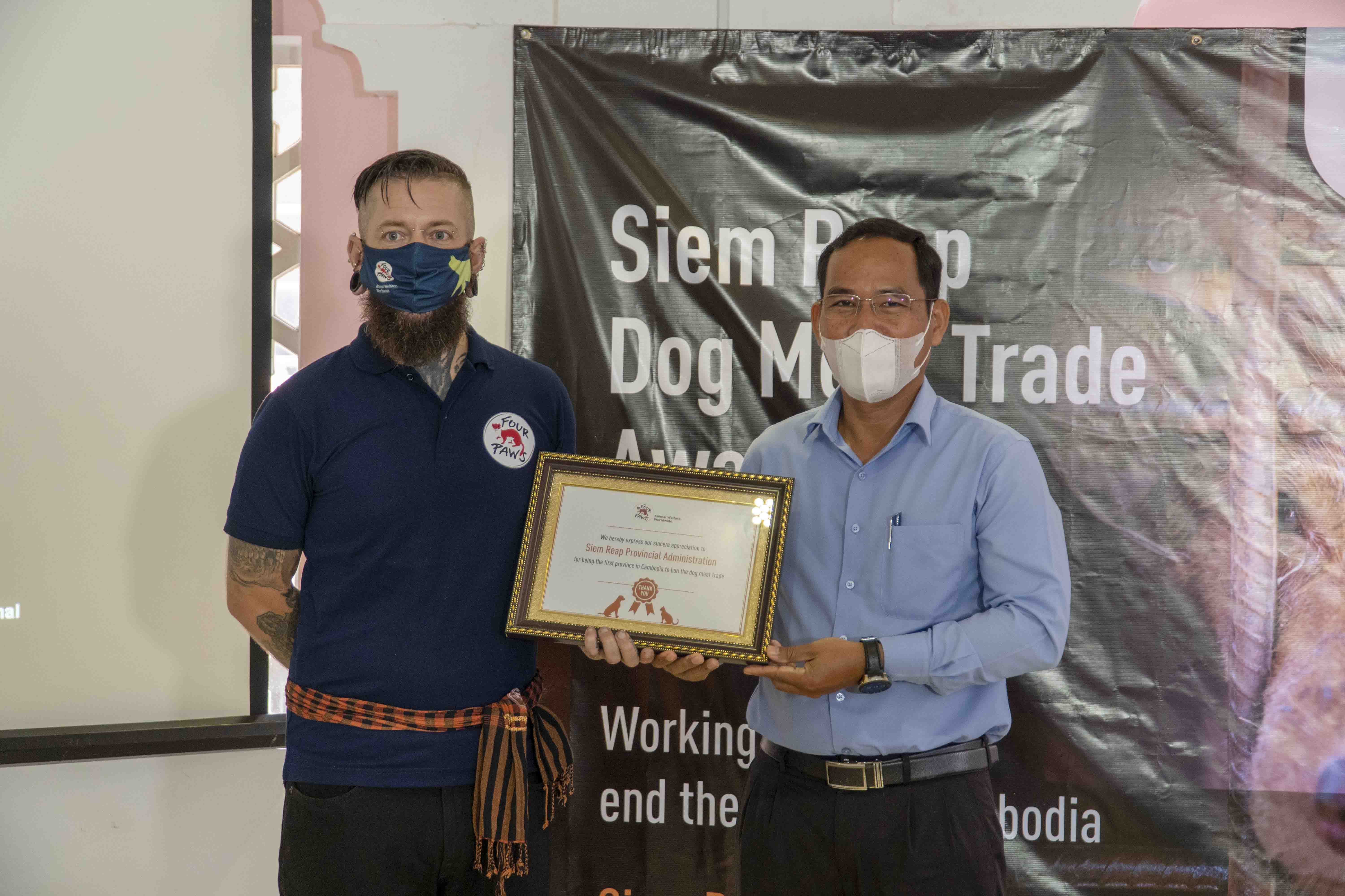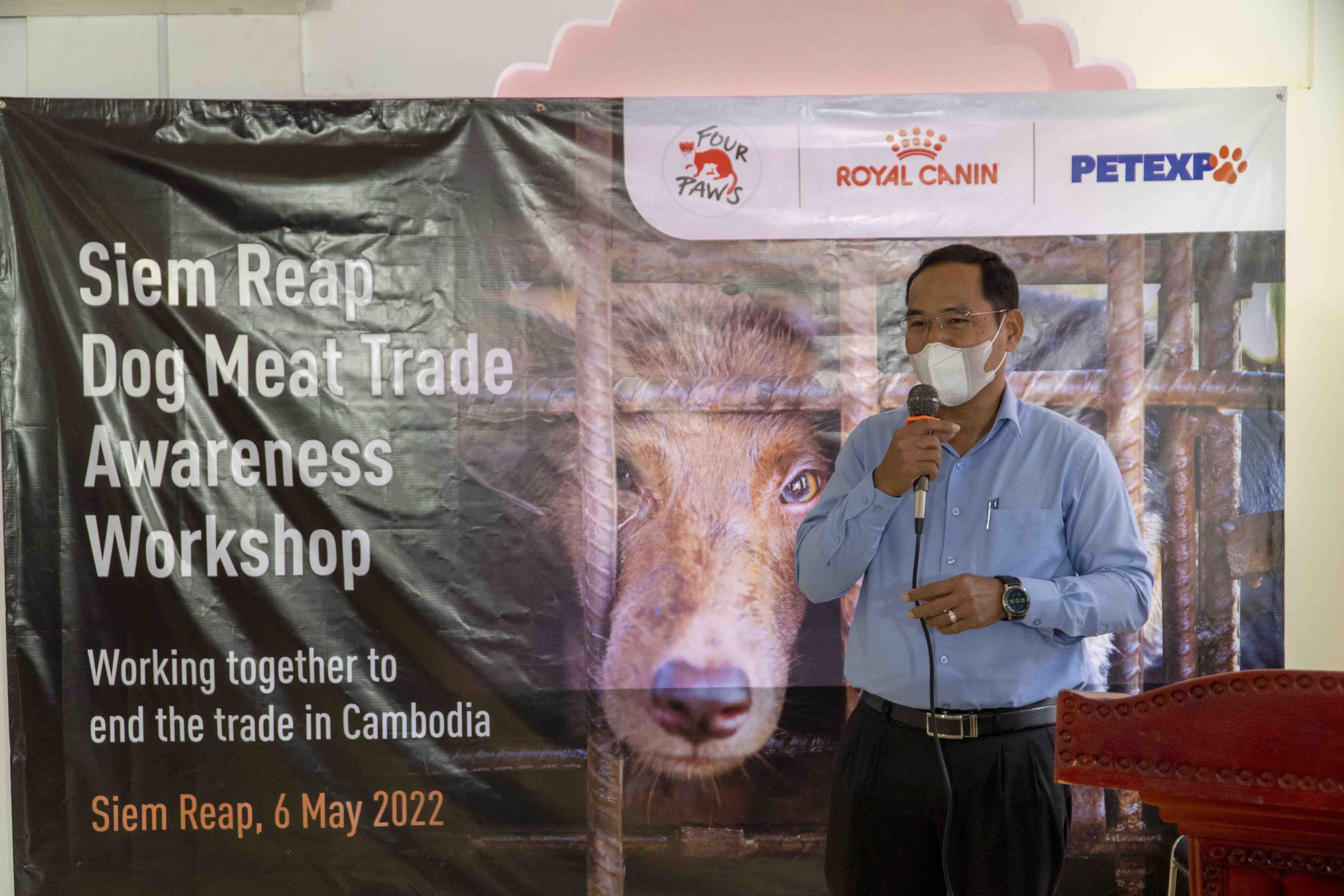 លោក ប៉ែន ប៊ុនធឿន ដែលមានវត្តមាននៅក្នុងអង្គសិក្ខាសាលានេះផងដែរ មកពីមន្ទីរកសិកម្ម រុក្ខាប្រមាញ់ និងនេសាទខេត្តសៀមរាប បានមានប្រសាសន៍ថា “យើងមានការសប្បាយចិត្តដែលបានទទួលការទទួលការថ្លែងអំណរគុណពី អង្គការ ហ្វរផរ ។ យើងមានមោទនភាពដែលបានក្លាយជាខេត្តដំបូងគេក្នុងប្រទេសកម្ពុជាដែលចេញសេចក្តីជូនដំណឹងហាមឃាត់ការធ្វើអាជីវកម្មទិញ លក់ ពិឃាតសត្វសុនខ (ឆ្កែ) ហើយយើងនឹងសង្ឃឹមខ្ពស់ក្នុងការសហការគ្នាជាមួយ អង្គការ ហ្វរផរ និងដៃគូរបស់យើងនាពេលអនាគត ដើម្បីអនុវត្តសេចក្តីហាមឃាត់មួយនេះ។ យើងលើកទឹកចិត្តឱ្យខេត្តផ្សេងទៀត និងប្រជាជាតិទាំងមូលរួមរួបគ្នាក្នុងការប្រឆាំងអាជីវកម្មសាច់សត្វចិញ្ចឹមនេះ”។