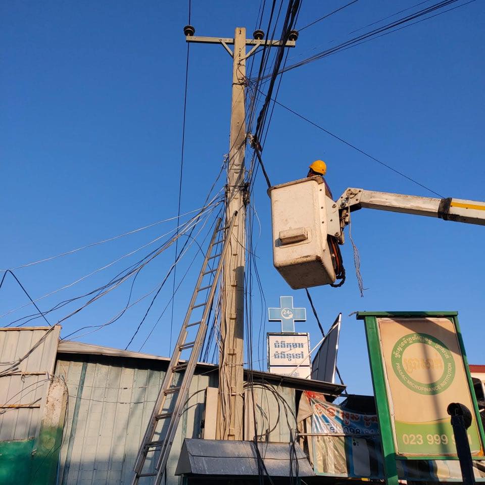 អគ្គិសនីកម្ពុជា ចុះជួសជុល ផ្លាស់ប្តូរ រុះរើគន្លងខ្សែបណ្តាញ ដើម្បីងាយស្រួលដល់ការដ្ឋានពង្រីកផ្លូវ ដែលអាចនឹងមានរអាក់រអួលអគ្គិសនីនៅតំបន់ទាំងនេះ