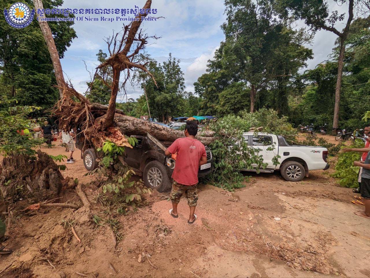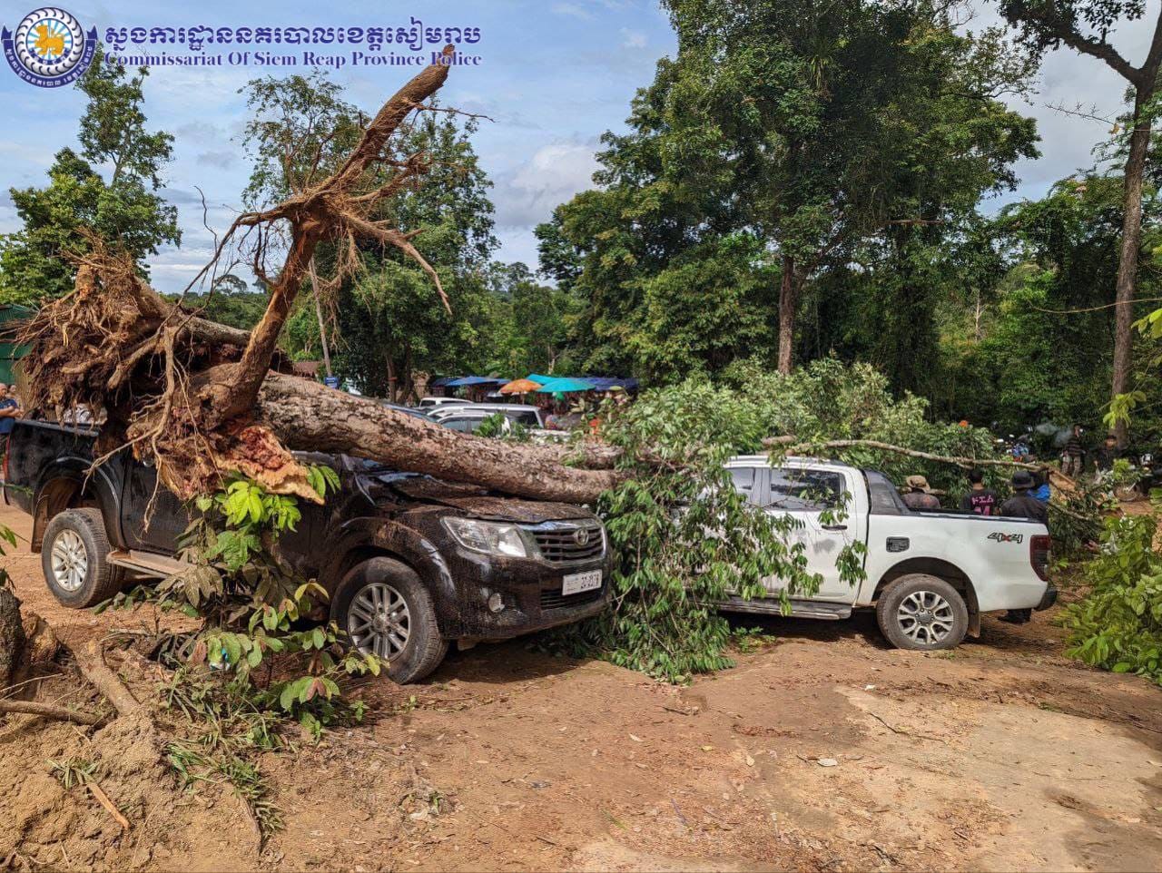 ខេត្តសៀមរាប៖ យោងតាមការចុះផ្សាយរបស់ ស្នងការដ្ឋាននគរបាលខេត្តសៀមរាប បានឲ្យដឹងថា នៅវេលាម៉ោង ១៤៖០០នាទីរសៀល ថ្ងៃទី២២ ខែឧសភា ឆ្នាំ២០២២ មានករណីរលំឈើសង្កត់រថយន្ដចំនួន ០៣គ្រឿង នៅចំណុចចំណតរថយន្ដទឹកធ្លាក់ជាន់ទី៣ (ទឹកជ្រោះភ្នំគូលែន) បណ្តាលមកពី ឬស និងគល់ឈើមានសភាព ពុកផុយ (មុនរលំមានភ្លៀងបន្តិច មិនមានខ្យល់ខ្លាំងទេ)។