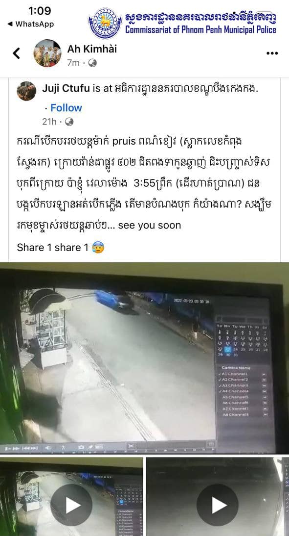 ស្នងការរាជធានីភ្នំពេញ កំពុងស្រាវជ្រាវអ្នកបើកបររថយន្តម៉ាក់ pruis ជិះបុកអ៊ុំប្រុសម្នាក់អាយុប្រហែលជាង ៦០ឆ្នាំ កំពុងដើរហាត់ប្រាណ (មានវីដេអូ)