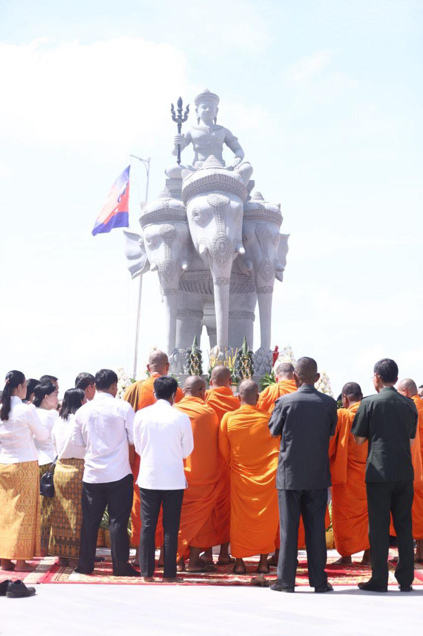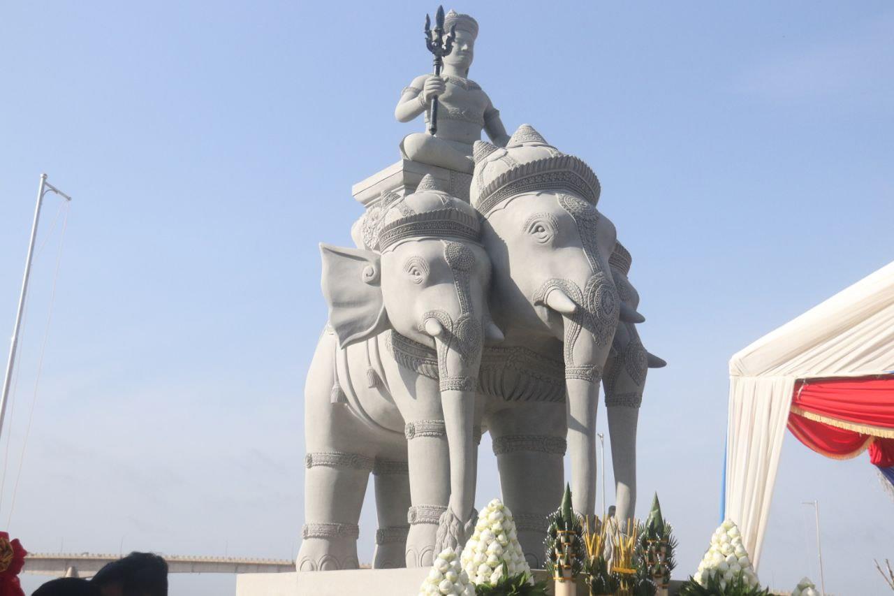 សូមបញ្ជាក់ថា រូបសំណាកបដិមា “ព្រះឥន្ទ្រគង់លើដំរីឯរវ័ណ” គឺជាកាផ្តួចផ្តើមកសាងឡើងដោយ ឯកឧត្តម អ៊ុន ចាន់ដា អភិបាលនៃគណៈអភិបាលខេត្តកំពង់ចាម និងលោកជំទាវ ព្រមទាំងឯកឧត្តម ខ្លូត ផន ប្រធានក្រុមប្រឹក្សាខេត្ត។
