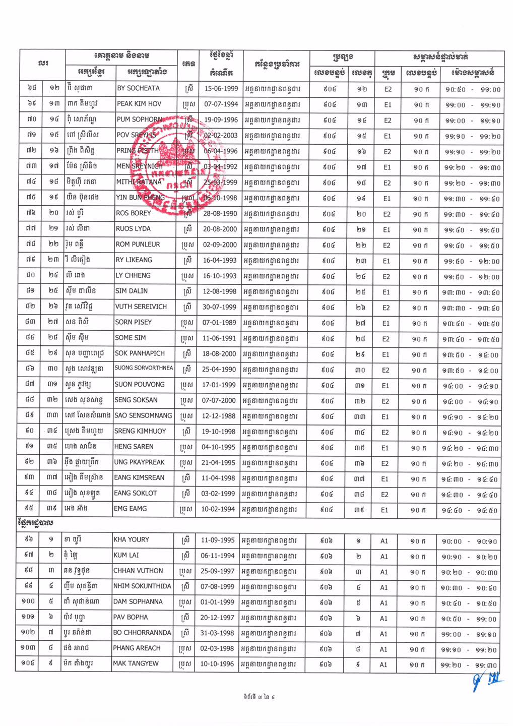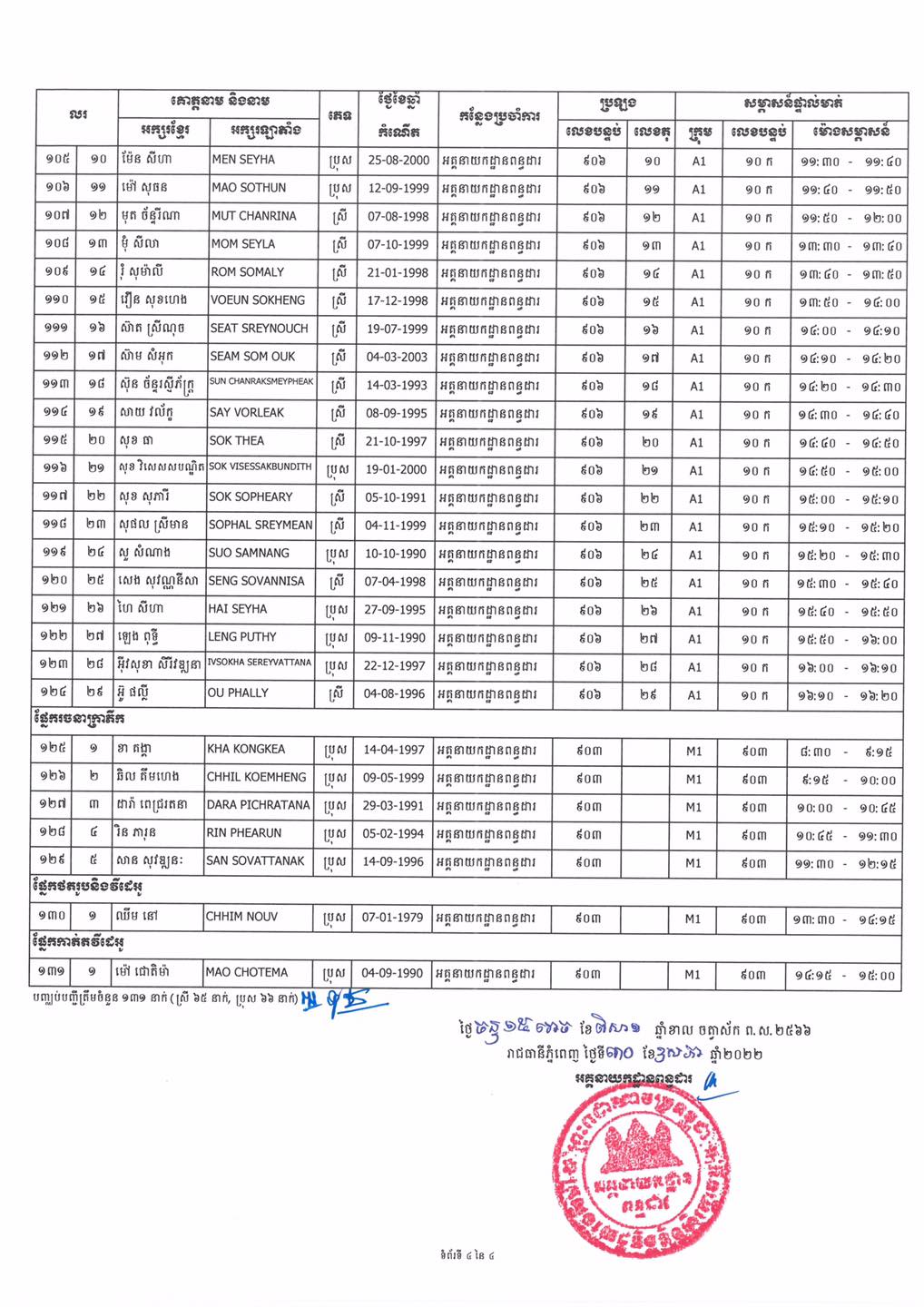 កាលបរិច្ឆេទនៅថ្ងៃទី១១ ខែមិថុនា ឆ្នាំ២០២២ វេលាម៉ោងចាប់ពី ០៨៖៣០នាទីព្រឹកតទៅ នៅទីកន្លែងសាលាជាតិពន្ធដារ។ អាស្រ័យហេតុនេះ សូមបេក្ខជន លេខបន្ទប់ លេខតុ ក្រុមសម្ភាសន៍ និងម៉ោងសម្ភាសន៍ឲ្យបានច្បាស់លាស់ និងមកចូលរួមប្រឡងប្រជែងកុំបីខាន ៕