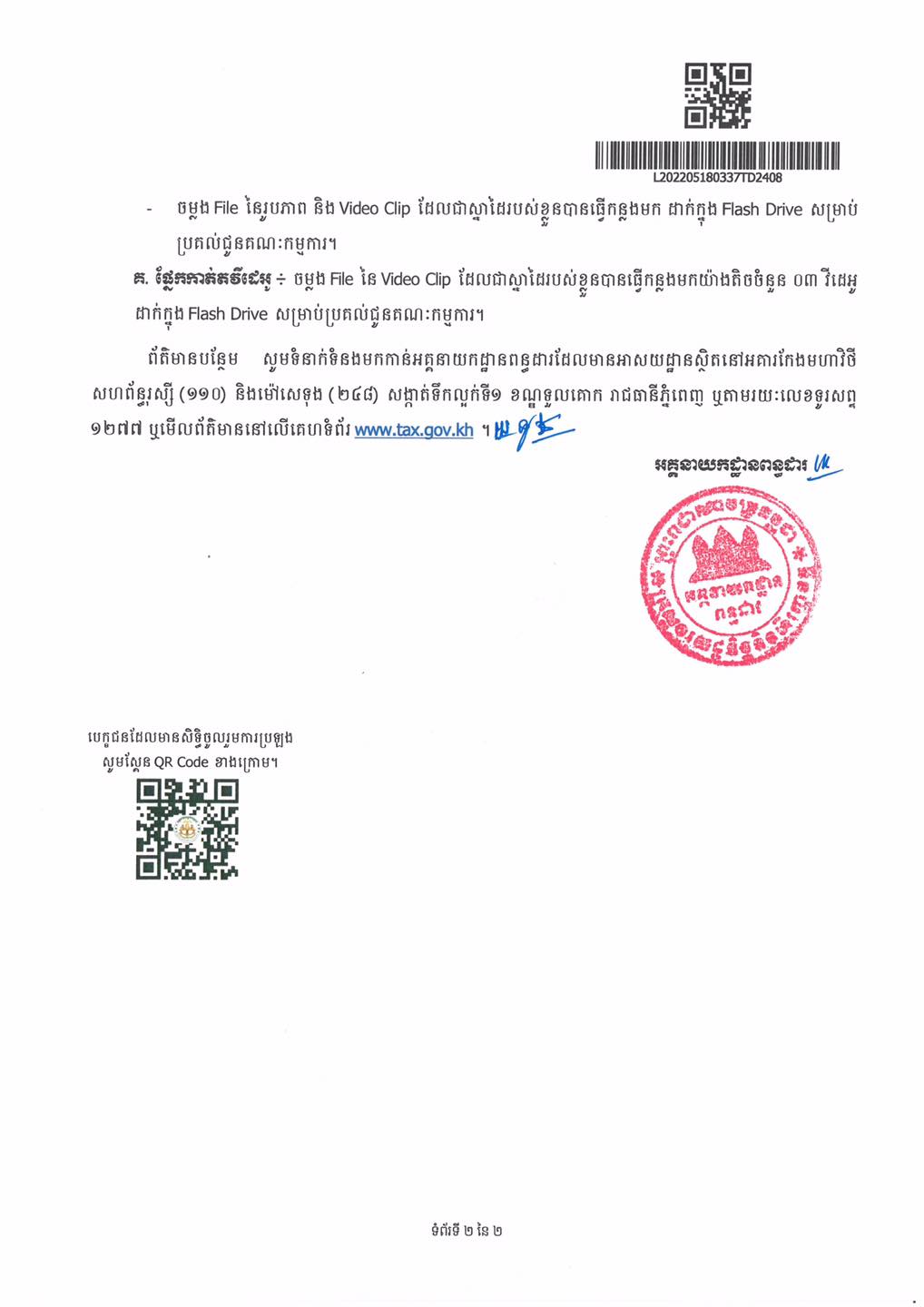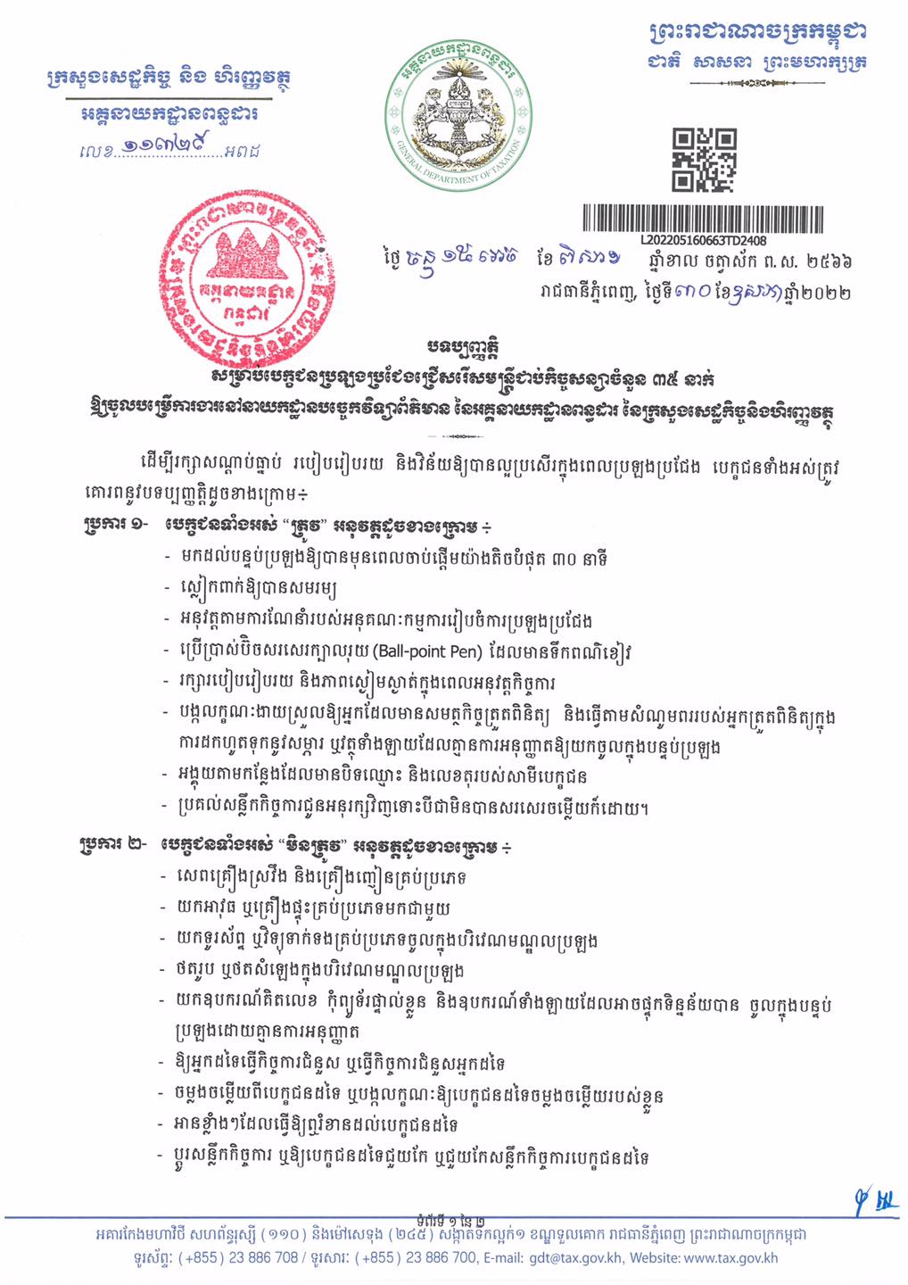 សូមអានសេចក្ដីជូនដំណឹងលម្អិតរបស់ អគ្គនាយកដ្ឋានពន្ធដារ ដូចខាងក្រោម៖
